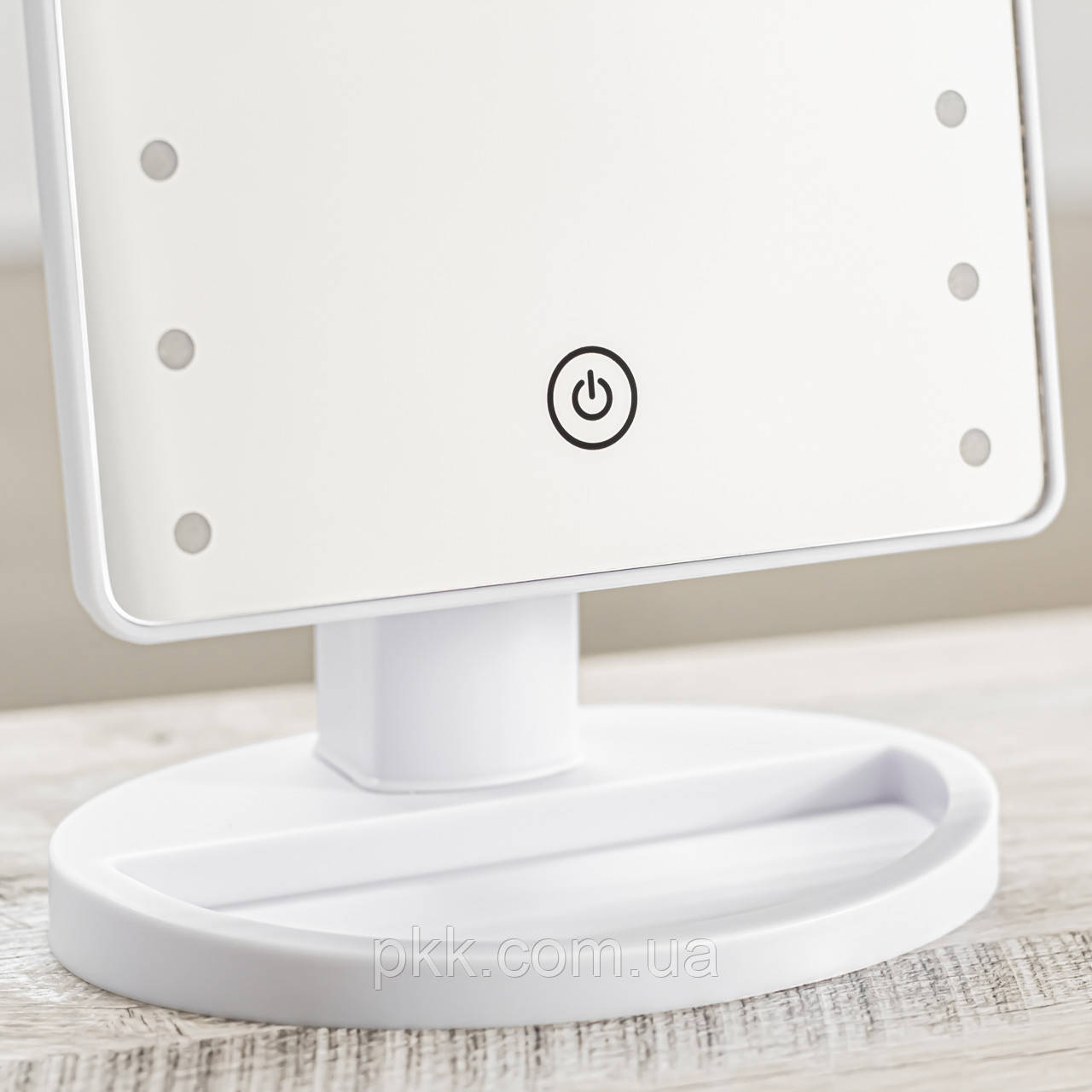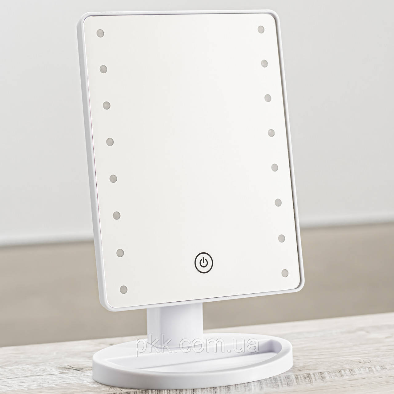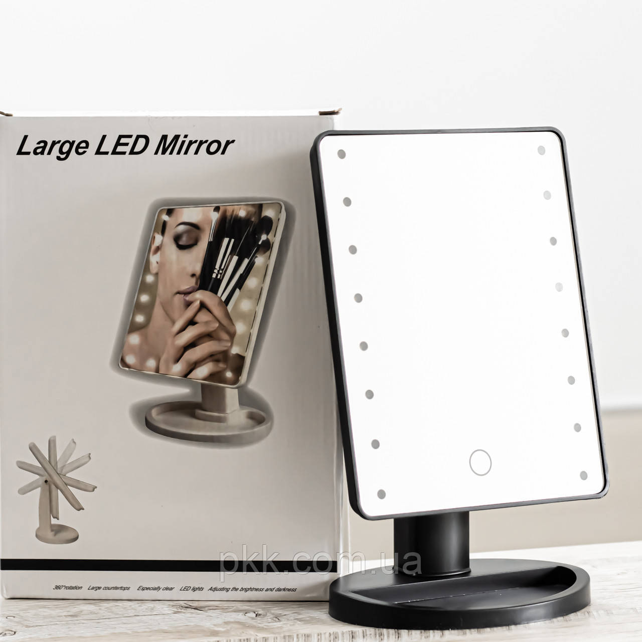 Косметическое зеркало на удобной подставке с подсветкой, имеет 22 светодиода обеспечивают равномерное освещение лица со всех сторон в любое время суток, что позволит вам равномерно нанести косметику, не допуская ошибок.