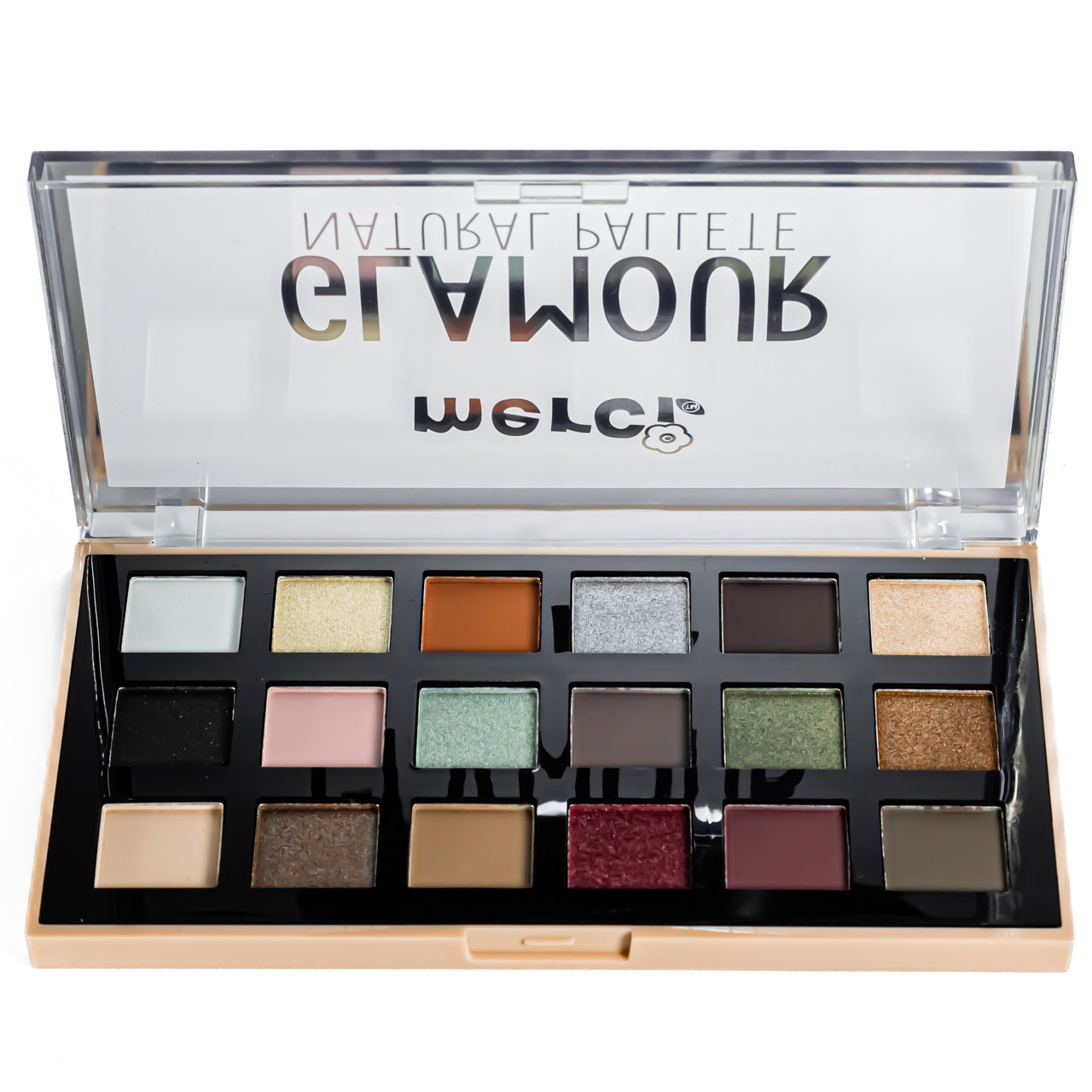 Набір тіней для повік з 18 кольорів матових та перламутрових відтінків Merci Glamour Natural PalleteТіні для повік MERCI матові, перламутрові й тіні з блискітками, 18 відтінків – ідеальна палетка на кожен день і для святкового макіяжу. Найактуальніші відтінки, багата, насичена структура тіней, легке поєднання відтінків один з одним і відмінні показники стійкості. Тіні не осипаються, не скочуються в складках повік, добре розподіляються. Всі відтінки можна наносити як сухим, так і вологим способом.Професійна палетка тіней MERCI, в якій зібрали тіні для повік не тільки чудових глибоких відтінків, але і натуральних, ніжних, легенів, підходять для денного і вечірнього макіяжу будь-якої складності. Для тривалої стійкості й виразності квітів нанесіть тіні на базу.Шимерні й матові відтінки мають такі особливості:тіні добре нашаровуються;