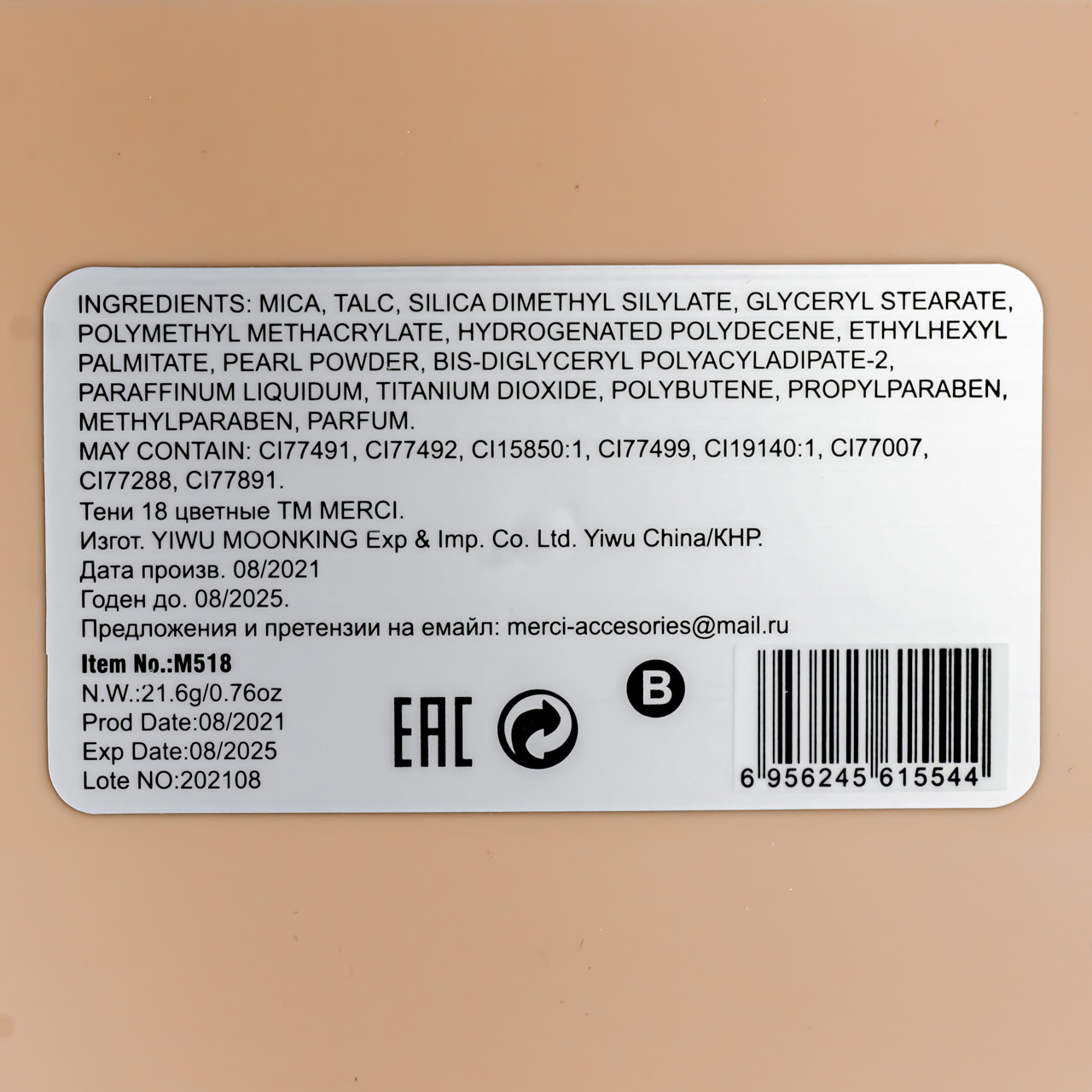 Палетка тіней для повік на 18 кольорів Merci Glamour М-518