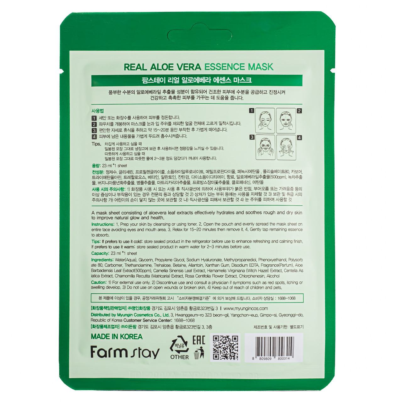 Тканинна маска FarmStay Real Aloe Vera Essence Mask містить екстракт алое віра.
