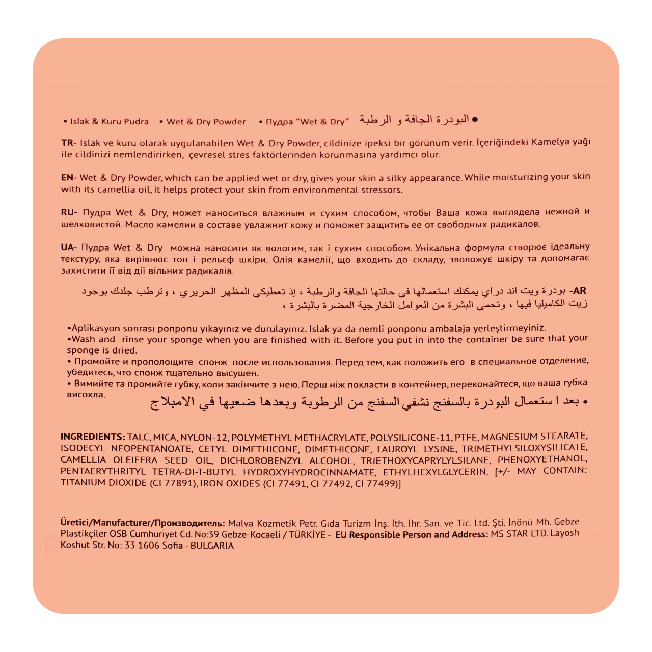 Використовуйте вологий спонж, щоб створити щільне покриття. Наберіть пудру і вбийте б'юті-продукт у шкіру так само як тональний крем.Вага: 10 г.