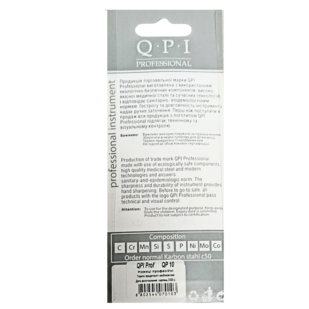 Професійні ножиці для кутикули і задирок Q.P.I. Professional виготовляються з нержавіючої сталі. Професійні ножиці для кутикули і задирок Q.P.I. Professional виготовляються з нержавіючої сталі. Леза ножиць дуже тонкі і гострі. Міцний і надійний інструмент з ідеальним кутом нахилу дозволяє домогтися бажаного результату без пошкодження і травмування нігтьової пластини або шкіри.