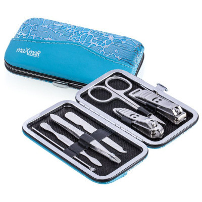 Манікюрний набір maXmaR з 7 інструментів в шкіряному блакитному футлярі МS-08
