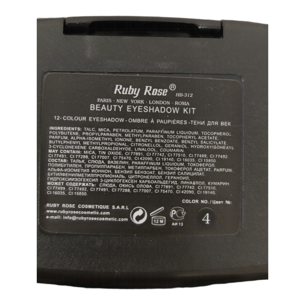 Палитра перламутровых теней для век Ruby Rose с зеркалом и аппликатором, 12 цветовНабор теней для век Ruby Rose НВ 312 состоит из 12 цветов, в компактной упаковке с большим зеркалом и одним двойным аппликатором. Одна палитра дает возможность создавать бесконечное множество образов для дневного и вечернего макияжа. Шелковая текстура теней легко ложится на кожу, сохраняя цветовую насыщенность и не утяжеляя веко. Она хорошо поддается растушевке, что дает возможность получать различные тона и оттенки.Стойкие тени для век сохранят первоначальный вид на протяжение всего дня, не осыпятся и не соберутся в складках кожи. Хватает покрытия в один слой для нежного макияжа. При покрытии в два-три слоя - получаем богатый шиммером вечерний макияж.Тени упакованы в картонную коробочку. Пластиковая упаковка также оклеена полиэтиленовой пленкой для целостности.Доступны в 6 цветовых гаммах.Вес: 7 гр