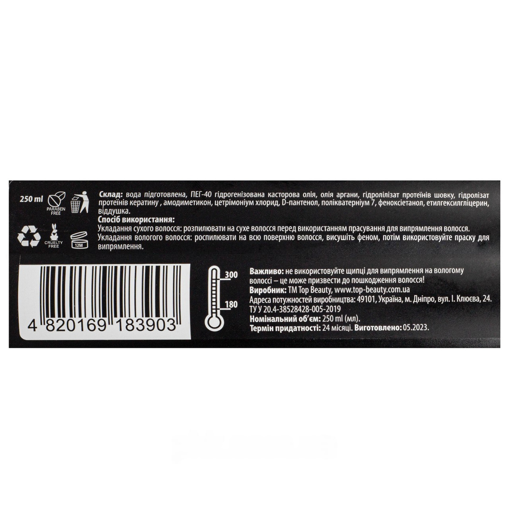Спрей термозахист для волосся Top Beauty Heat Protectant з олією аргани 250 мл. Изображение №2 Спрей термозахист для волосся Top Beauty Heat Protectant з олією аргани 250 мл. Изображение №3 Спрей термозахист для волосся Top Beauty Heat Protectant з олією аргани 250 мл. Изображение №4