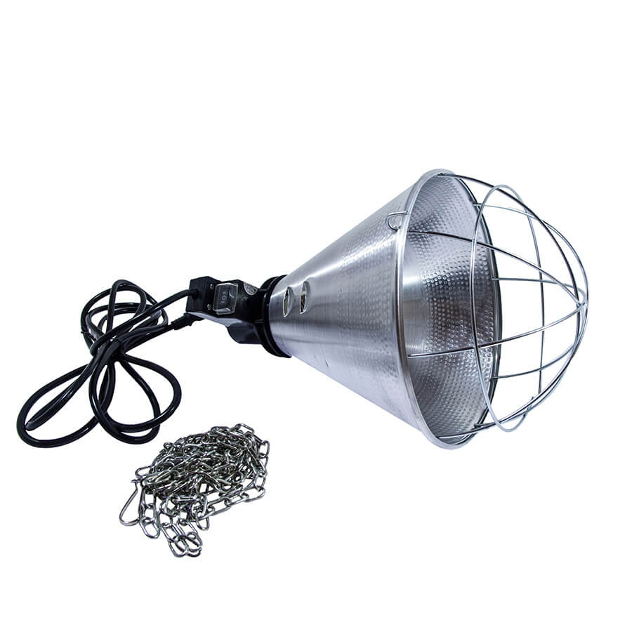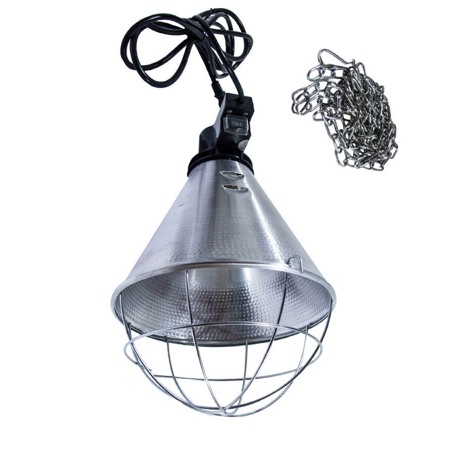 Плафон с металлическим отражателем применяется для обогрева домашних животных и птиц, используется вместе с инфракрасной лампой мощностью до 250 Вт.