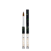 Професійний манікюрний пензлик для акрилу з кристаламиПрофесійні пензлі виготовлені спеціально для дизайну нігтів. Високоякісна синтетика, дуже м'який, але пружний ворс для роботи з гелем, фарбами тощо. Ворс стійкий до засобів для зняття лаку.Синтетичний пензлик зручний для нанесення акрилу, а також для виконання градієнтних малюнків та підкладок. Штучний ворс добре набирає матеріал, переносить та рівномірно розподіляє по нігтьовій пластині. Пензель має пластиковий корпус, який щільно закривається ковпачком. Завдяки цьому ворсинки не деформуються при збереженні інструменту.На особливу увагу заслуговує стильного дизайну ручка-тубус, внутрішній простір якої наповнений різноколірними мікроскопічними кристалами для дизайну нігтів.Правила роботи з кистями для манікюру:після нанесення акрилу відразу ж очищайте пензлі та не дозволяйте матеріалу висихати; тримайте пензель якнайдалі від манікюрної лампи, щоб уникнути полімеризації матеріалу на ворсинках; зберігайте кисті у горизонтальному положенні.