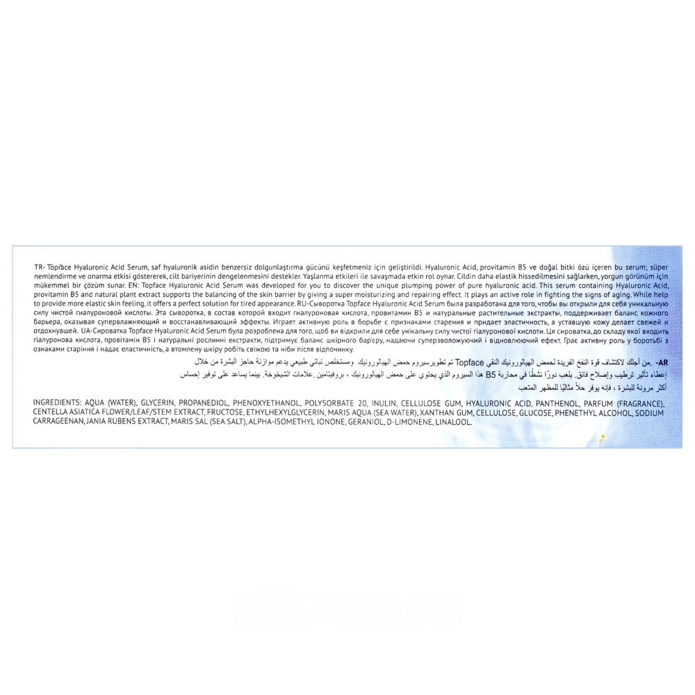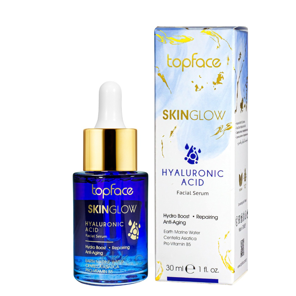Сироватка з гіалуроновою кислотою Skınglow Hyaluronıc Acıd від бренду Topface була розроблена, щоб познайомити вас з унікальною силою чистої гіалуронової кислоти. Вона містить також провітамін В5 та натуральний рослинний екстракт. Сироватка підтримує баланс шкірного бар'єру, забезпечуючи чудовий зволожувальний та відновлювальний ефекти. Вона грає активну роль боротьби з ознаками старіння. Допомагаючи надати шкірі відчуття більшої еластичності. Це ідеальне рішення для втомленого вигляду.