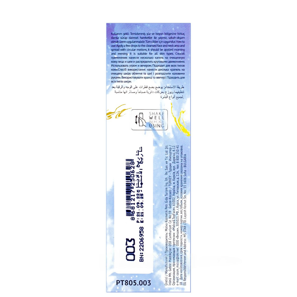Спосіб застосування: нанесіть 1-2 краплі на очищену шкіру та акуратно поплескайте.