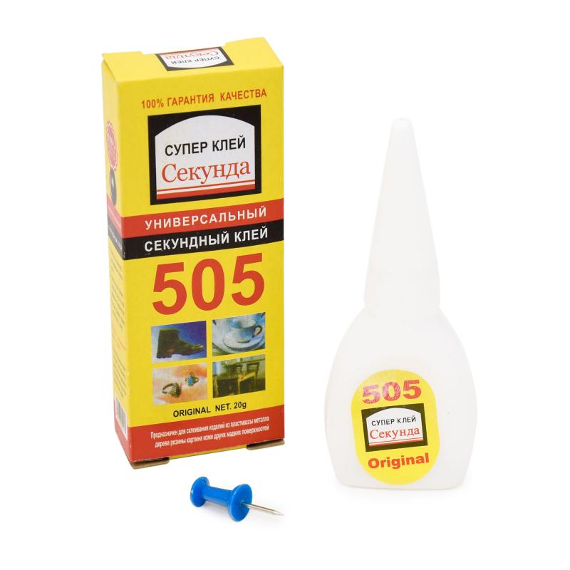 Супер клей 505 "Секунда". Універсальний секундний клей. Об'єм - пляшечка 15 гр. Упаковка - коробка. Розмір - 19х17х10 см. Ціна за штуку.