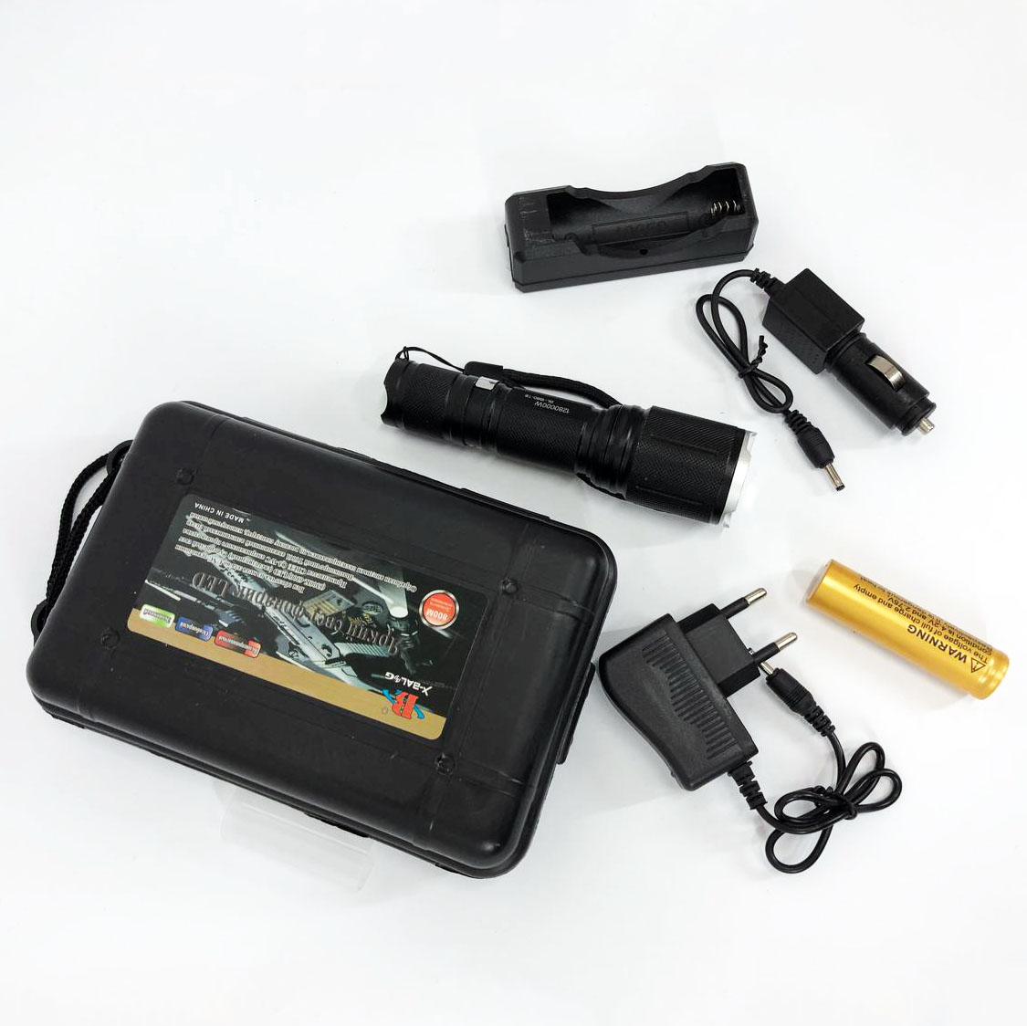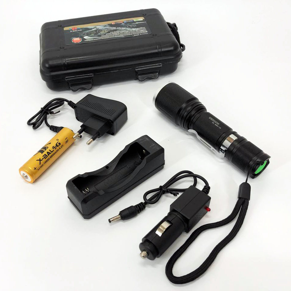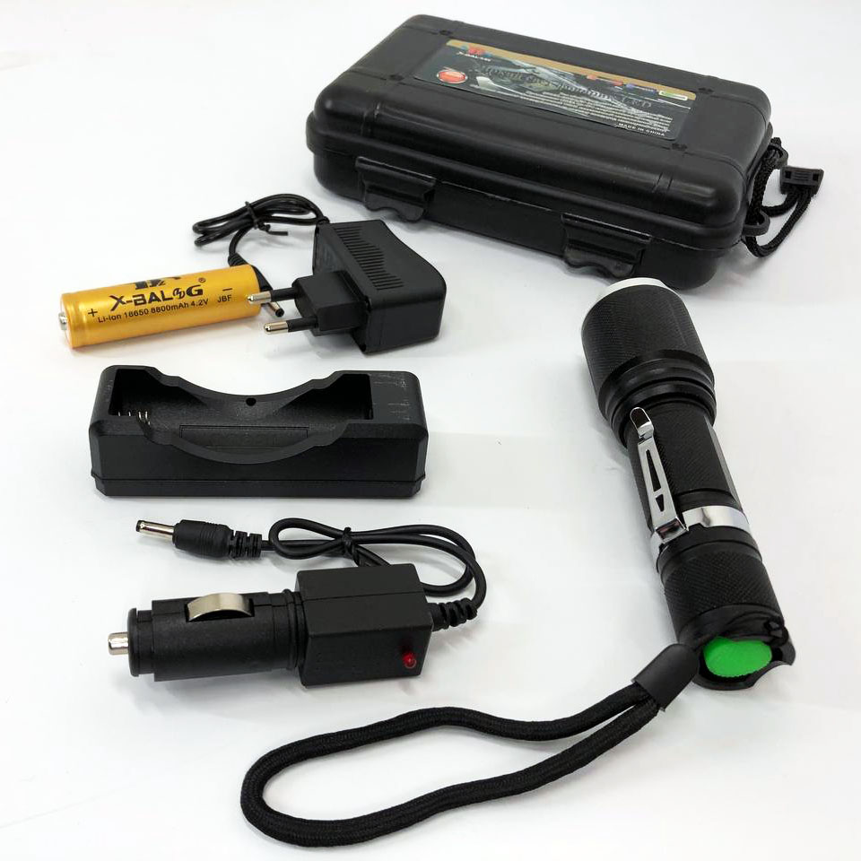 Фонарь работает на литий-ионном аккумуляторе Li-ion 18650 6800 mAh 4.7V, (идет в комплекте). Заряжать аккумулятор можно с помощью двух зарядных устройств: от сети и от автомобильного прикуривателя. Фонарь POLICE BL-1860-T6 50000W выполненный в высокопрочном (авиационный сплав) анодированном алюминиевом корпусе, износоустойчивый, водонепроницаемый, особо яркий.