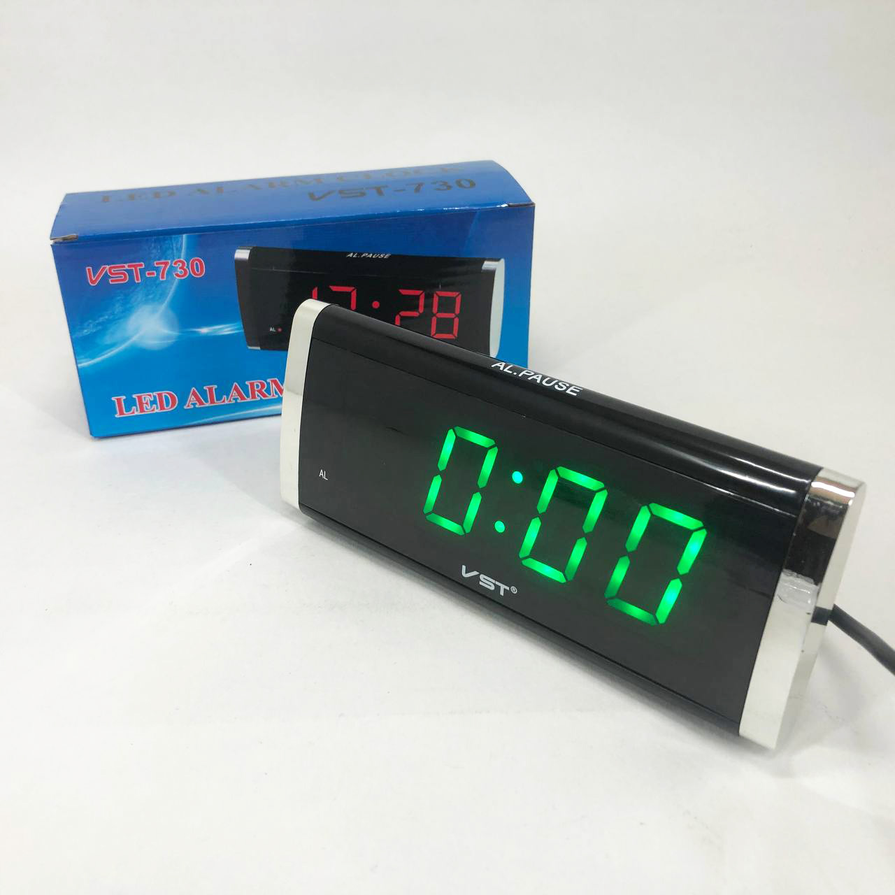 Электронные Часы VST-730-4 green, цифровые настольные сетевые часы, led alarm clock с будильником