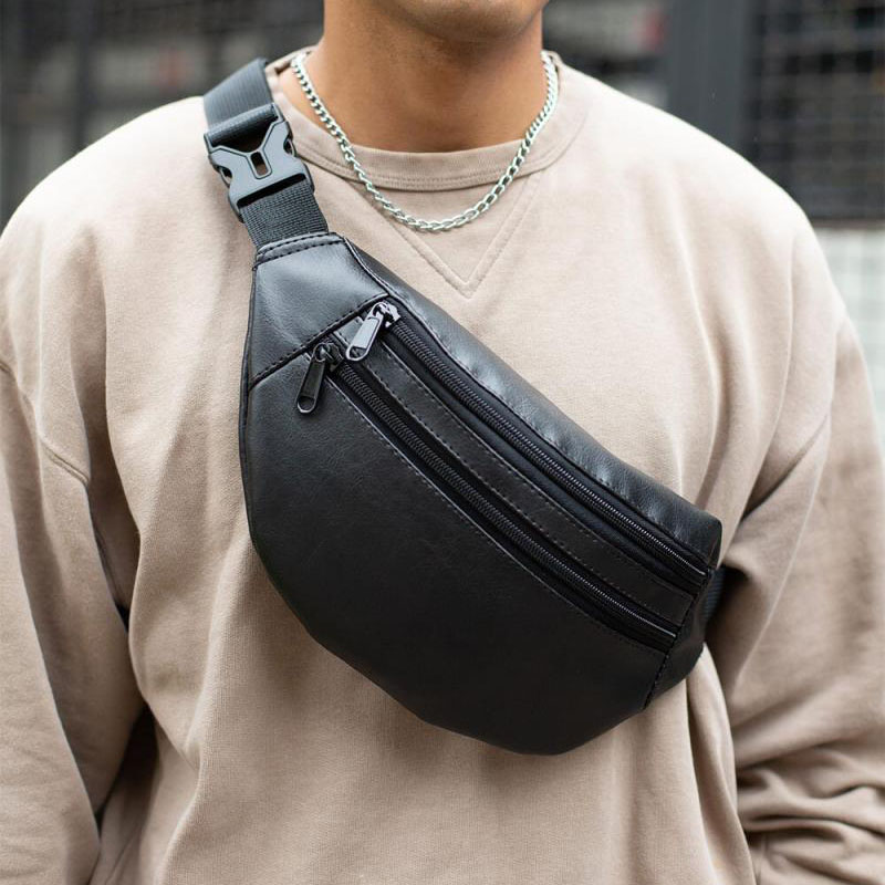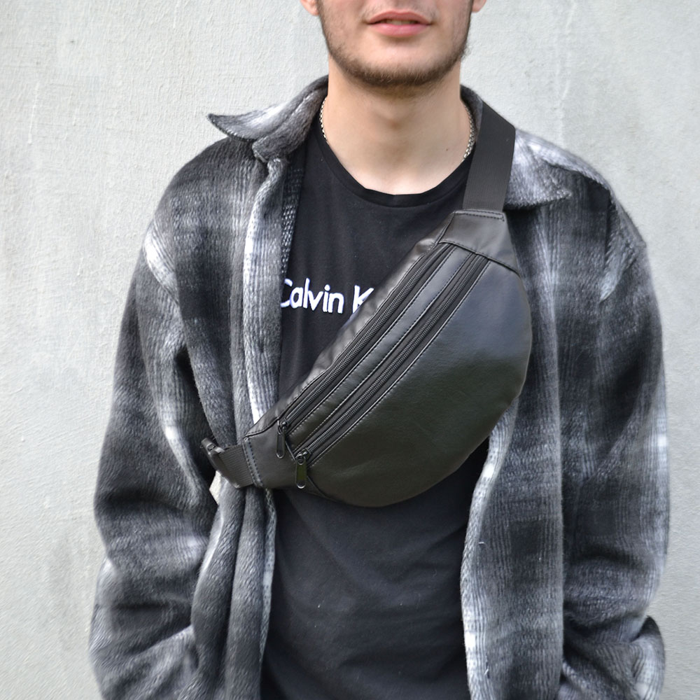 Сумка на пояс из эко-кожи. Сумка через плечо. Бананка мужская, женская Black