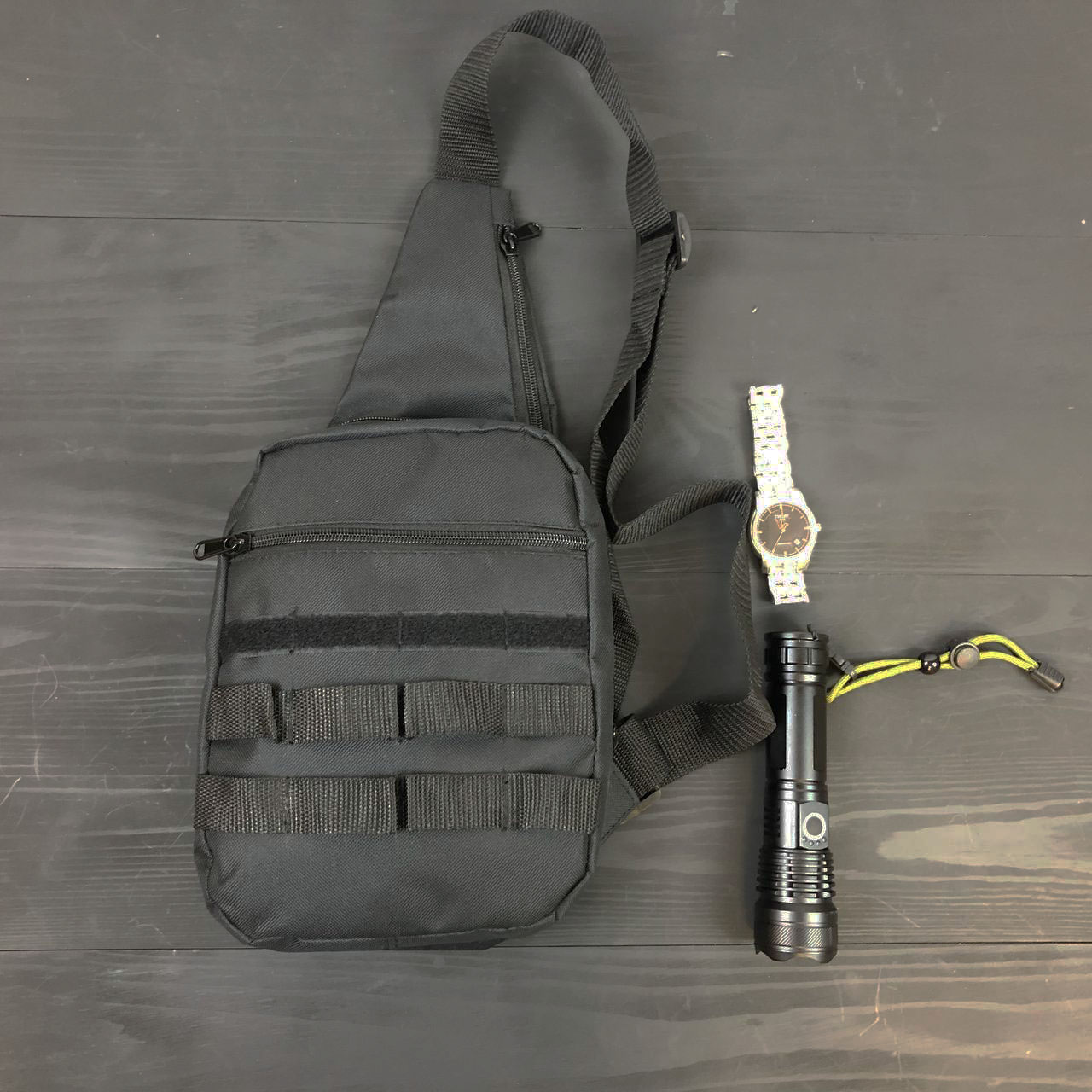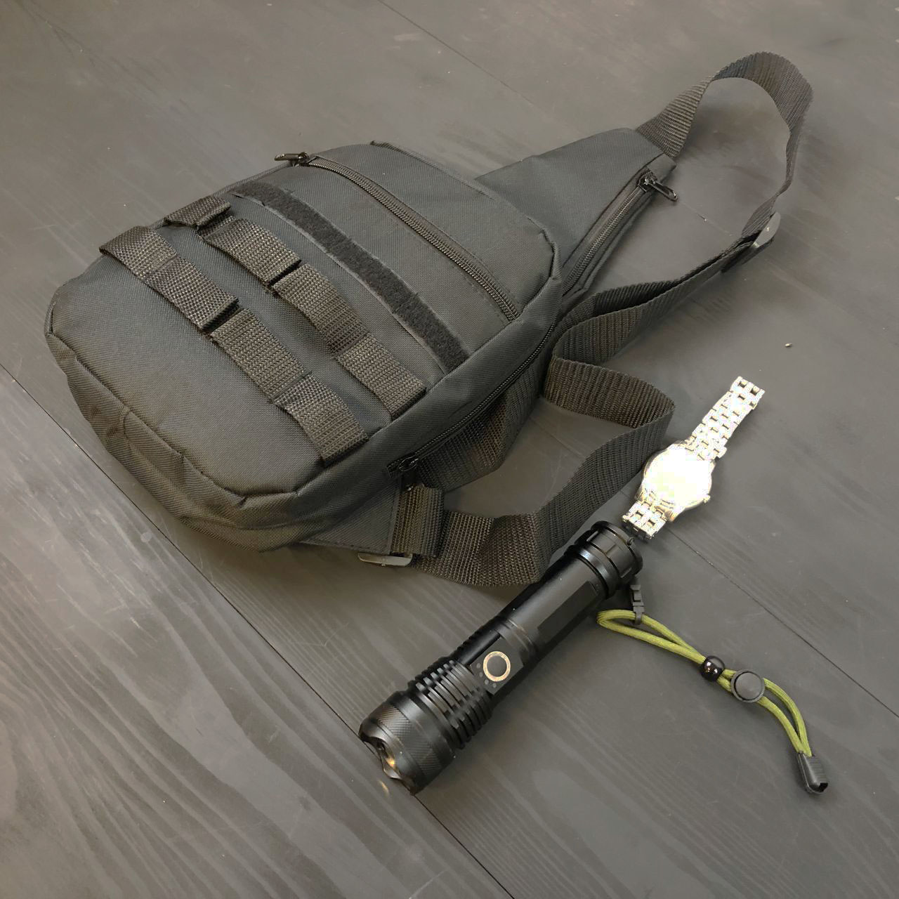 Тактическая сумка универсальная, имеет 6 карманов, может поместить все необходимые вещи (документы, пистолет, баллончик и другие аксессуары).
