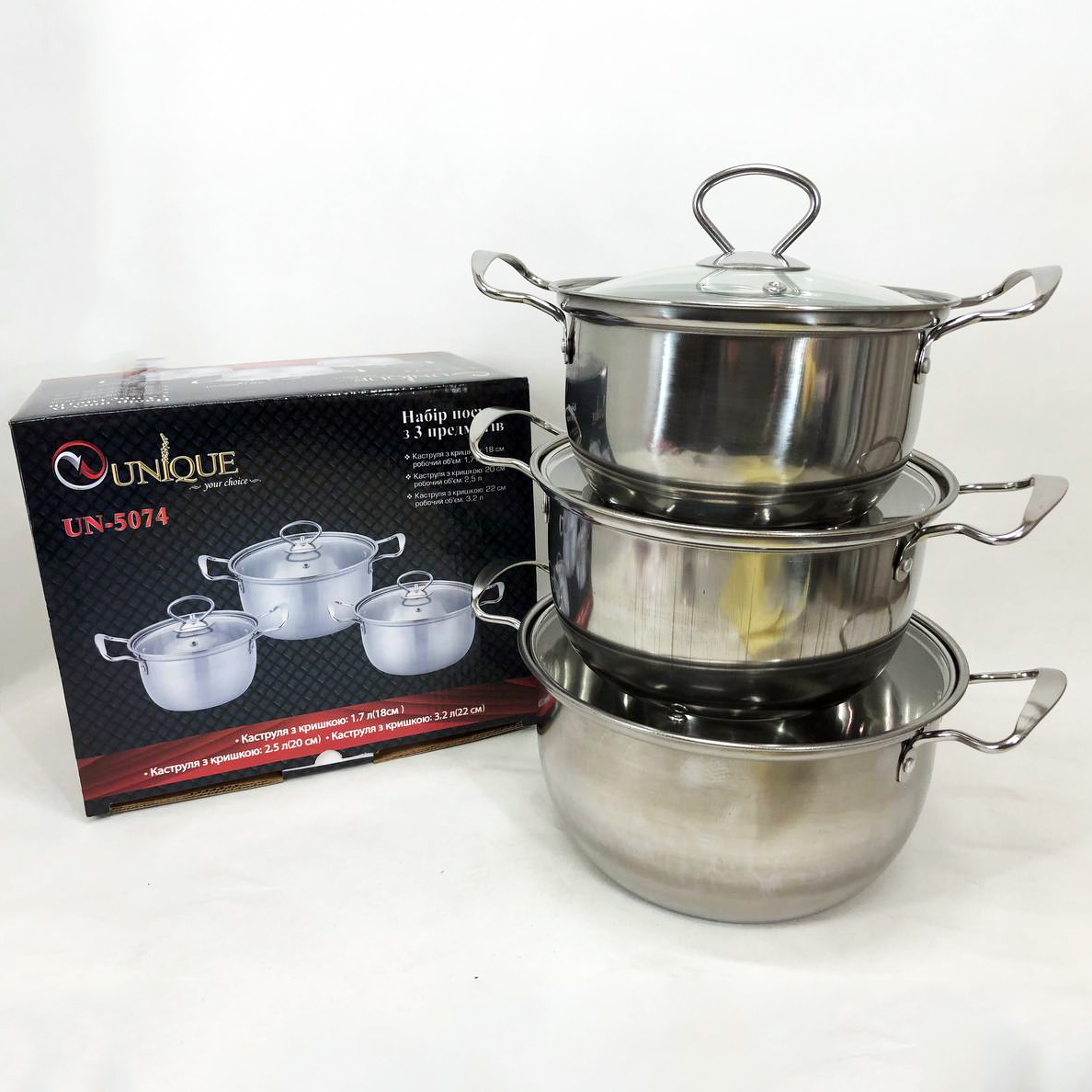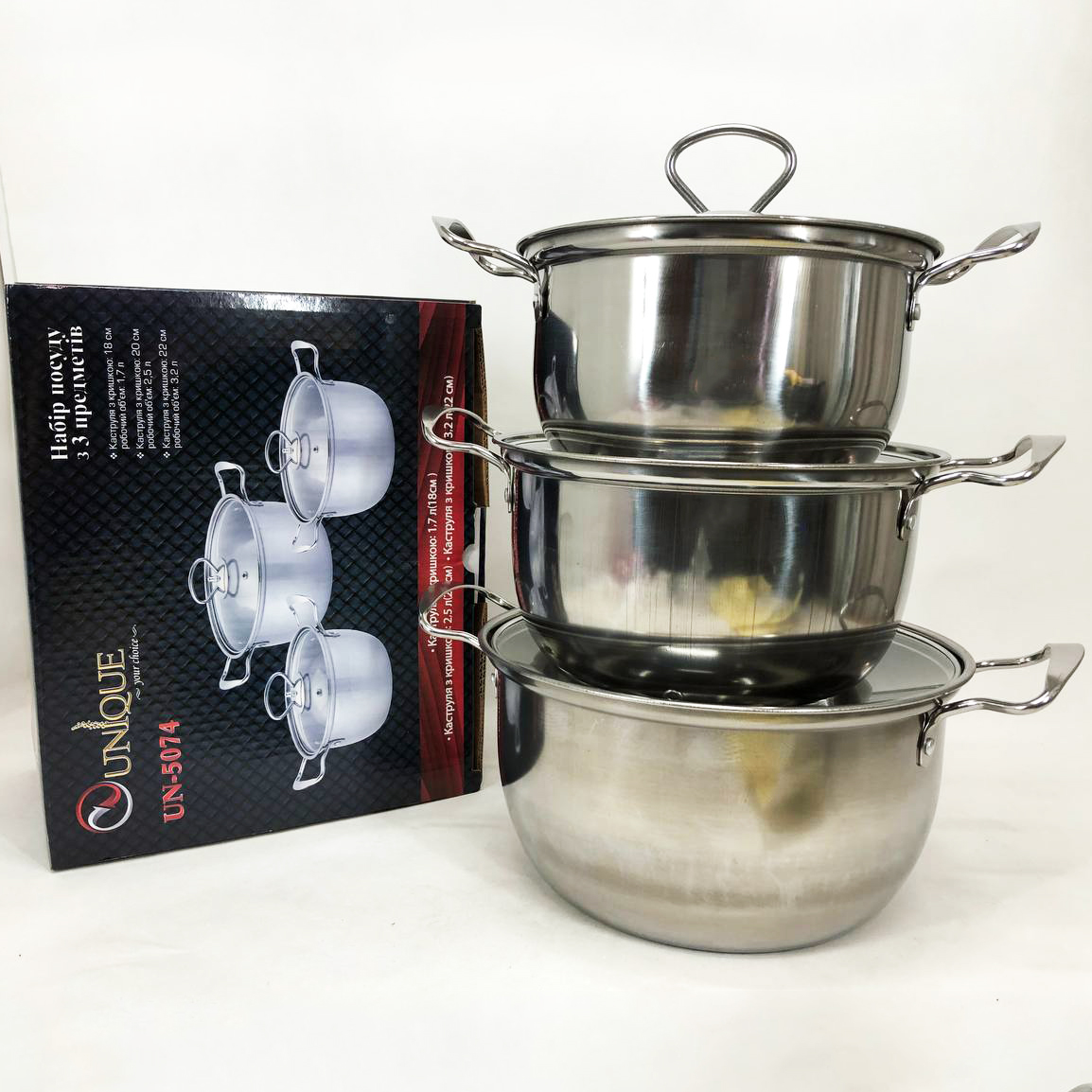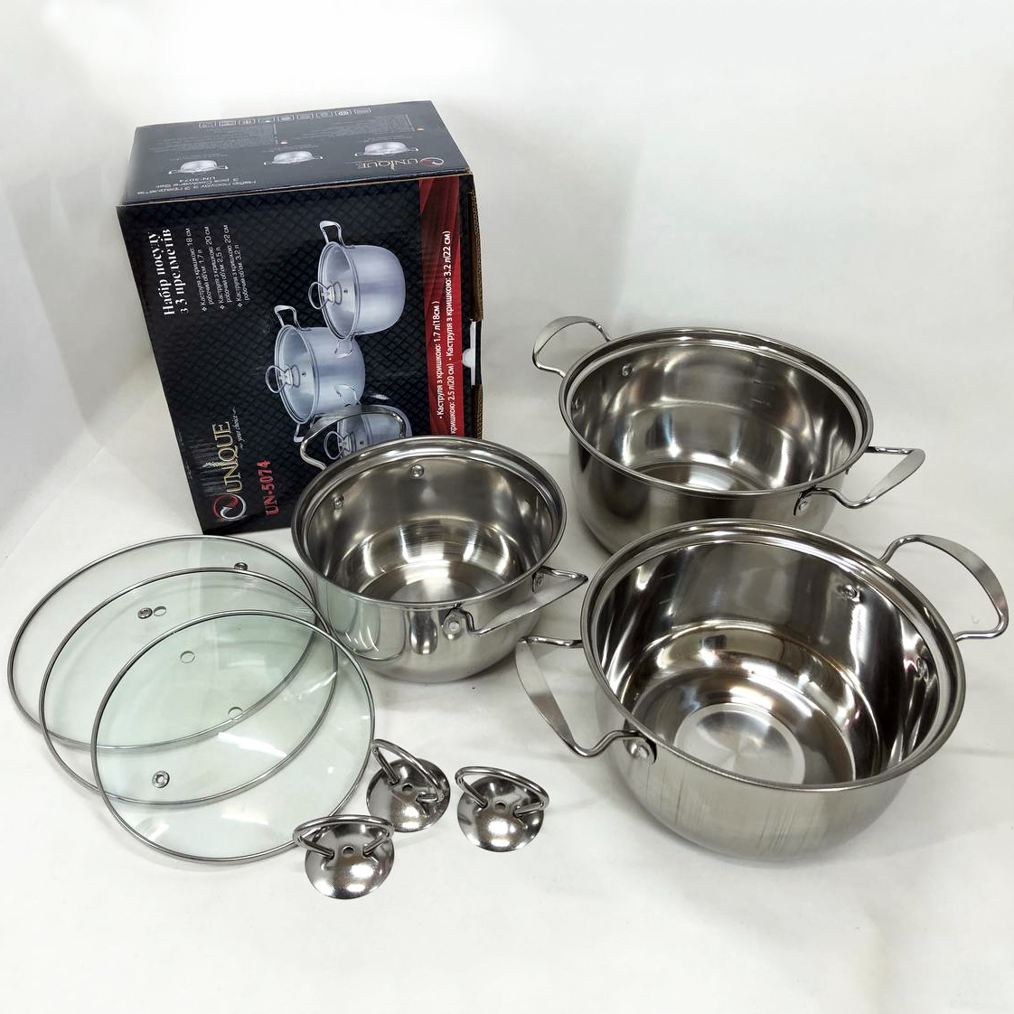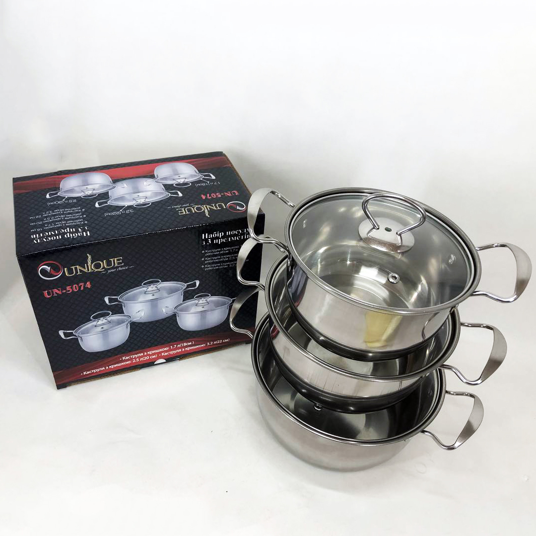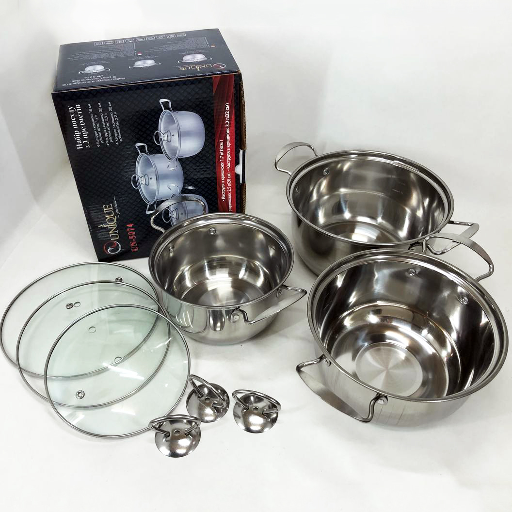 Набор кастрюль из нержавеющая стали с крышками UNIQUE UN-5074, набор посуды для электрических плит