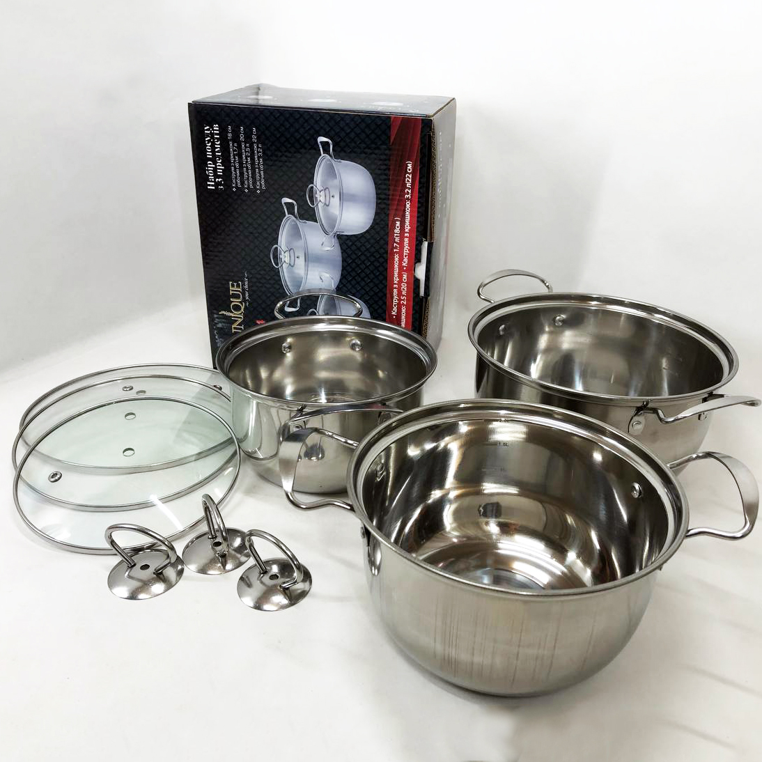 - 3 кастрюли из нержавеющей стали