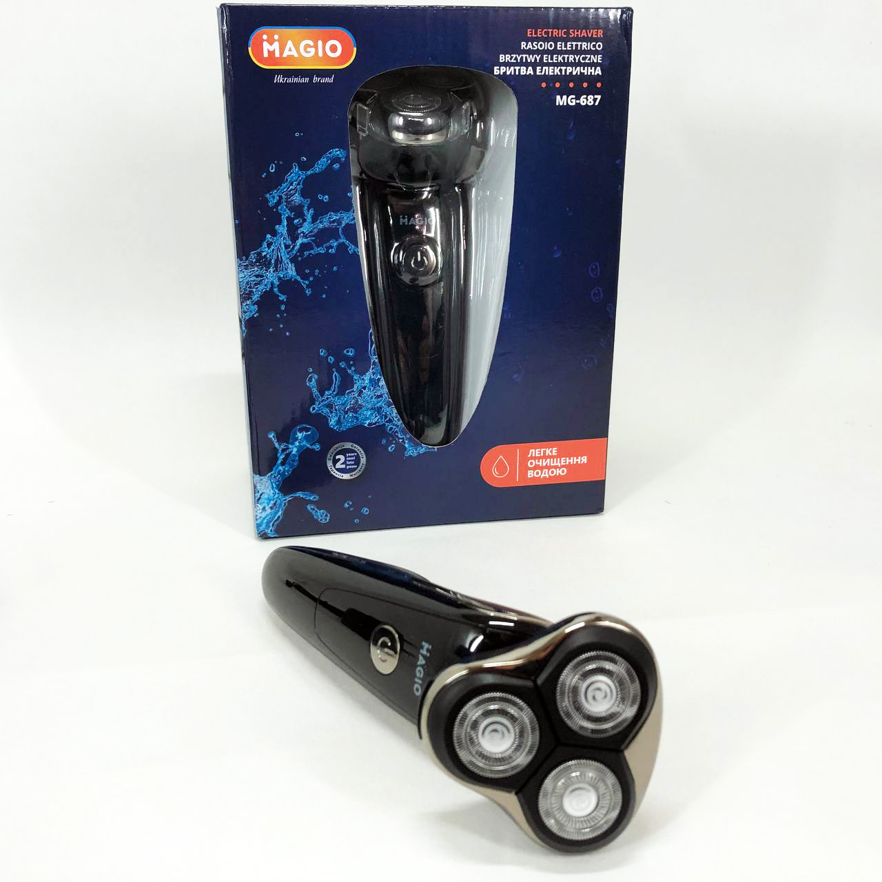 Электробритва MAGIO MG-687 3 головки, сухое/влажное бритье, высувной триммер