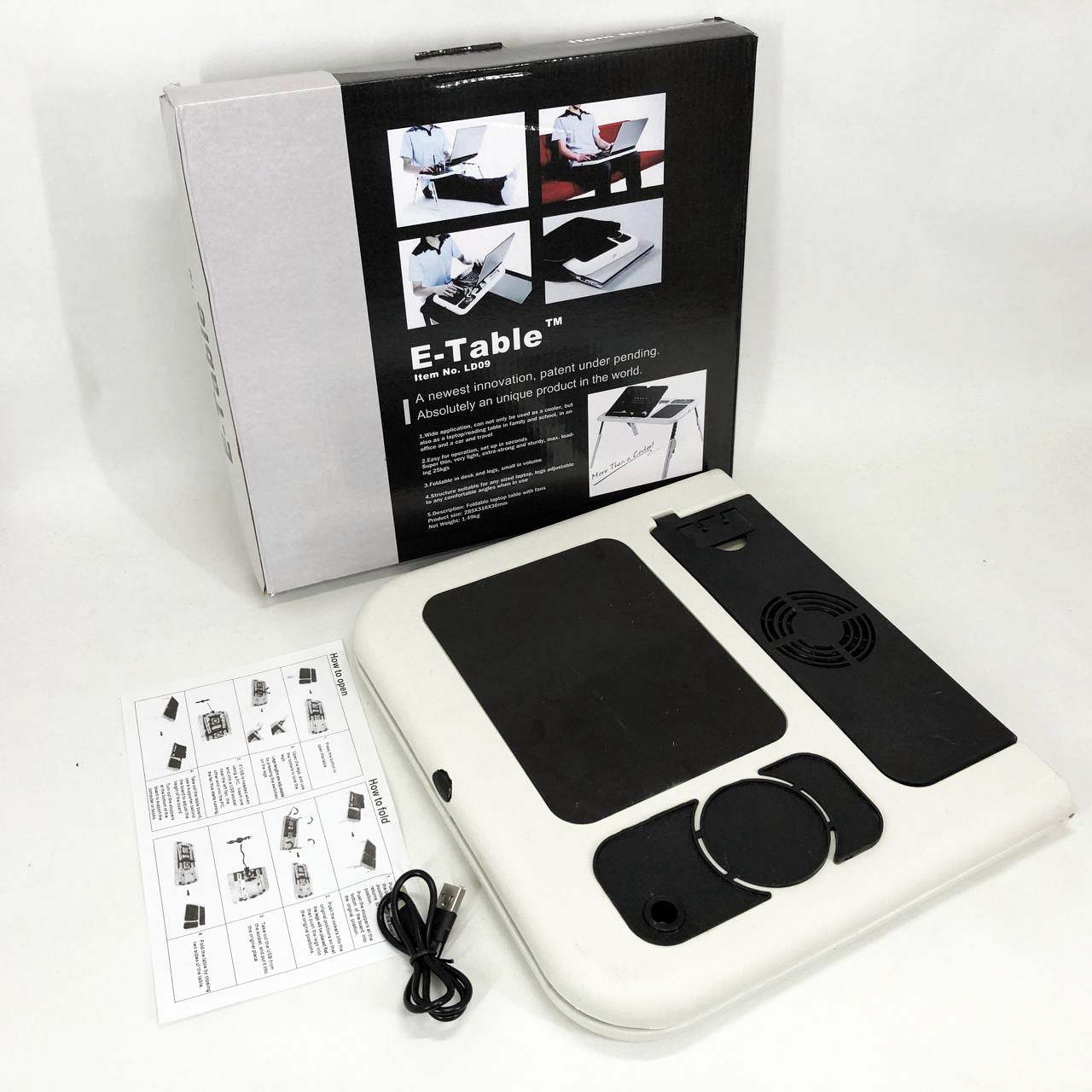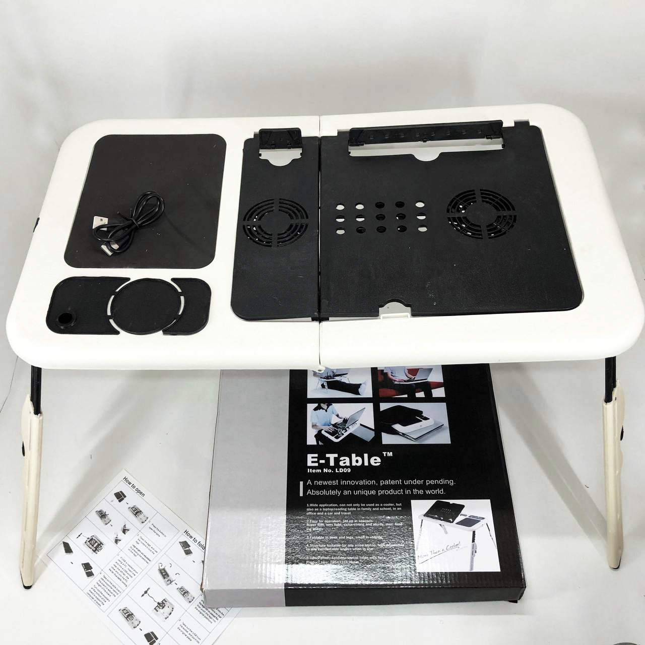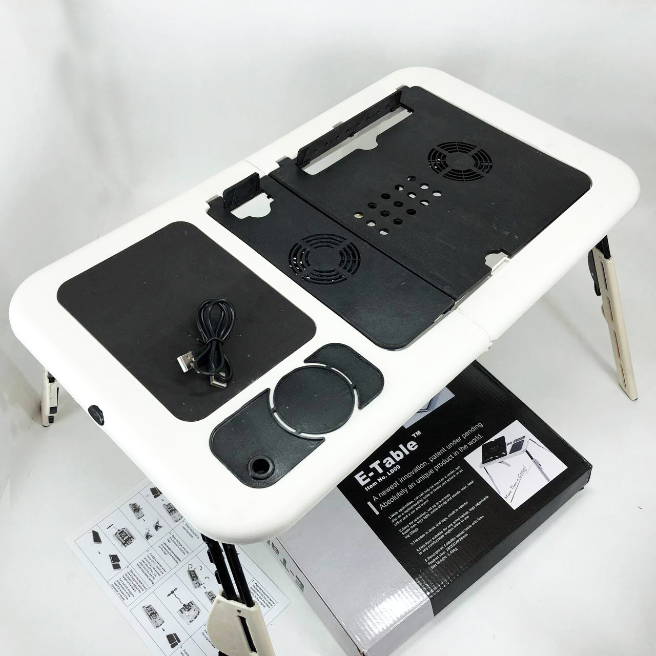 Складной столик для ноутбука LD-09 E-Table, столик с охлаждением 2 USB кулера, Стол подставка с вентиляцией