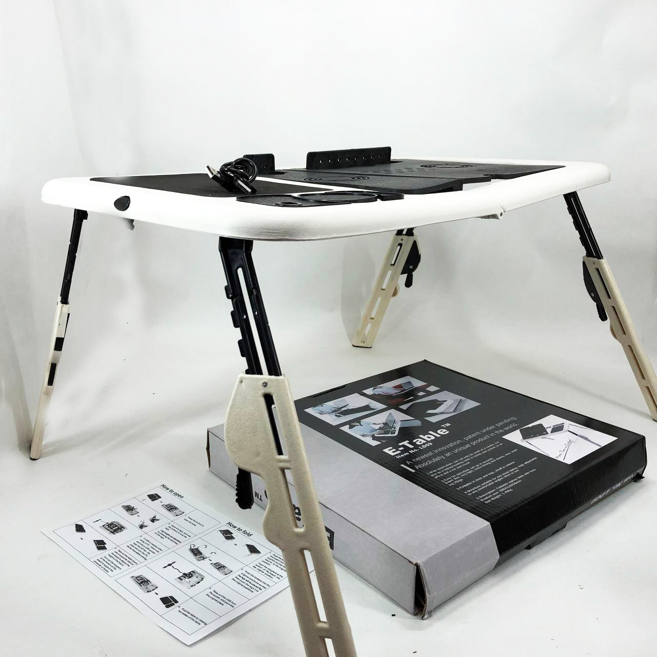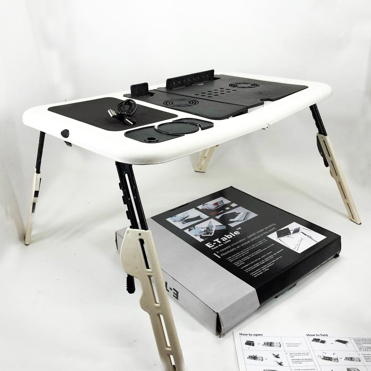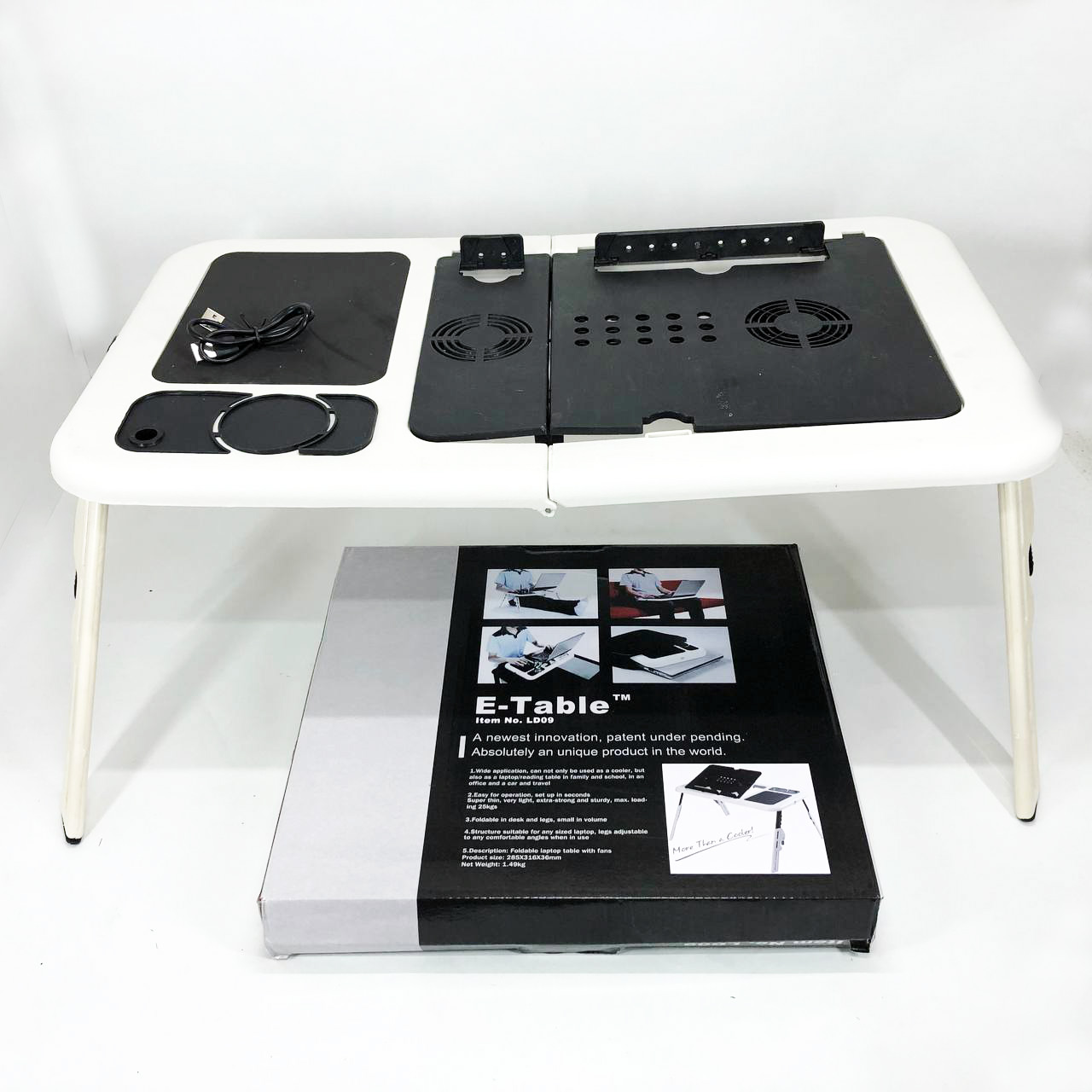 Складной столик для ноутбука LD-09 E-Table, столик с охлаждением 2 USB кулера, Стол подставка с вентиляцией