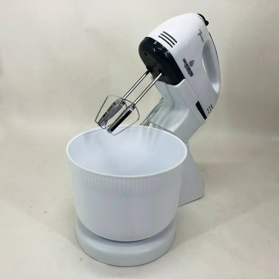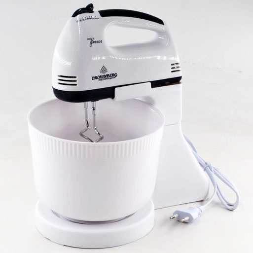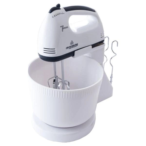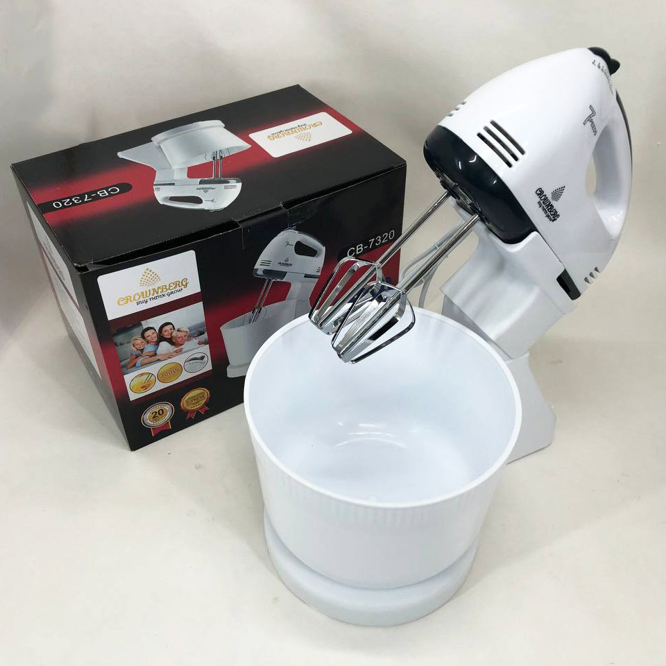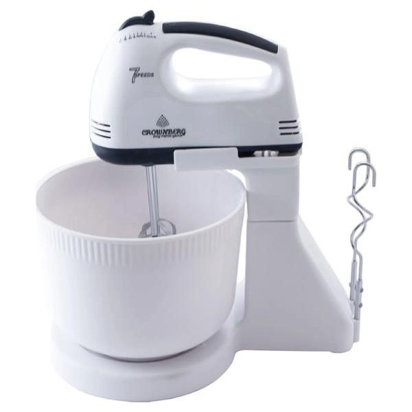 Миксер Crownberg CB-7320 ручной с подставкой и емкостью 2л 300 Вт на 7 скоростей, кухонный тестомес