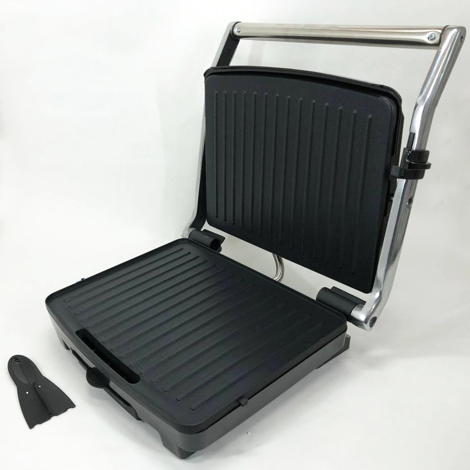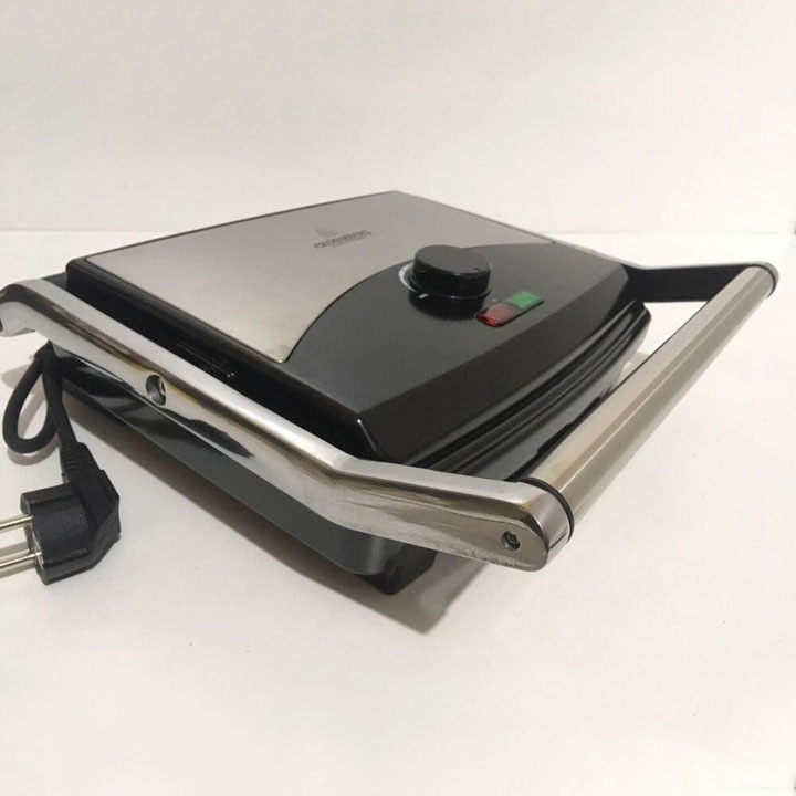 Приготовление происходит без добавления масла. Гриль выполнена в высококачественном металлическом корпусе из нержавеющей стали, с удобной ручкой для поднятия крышки.