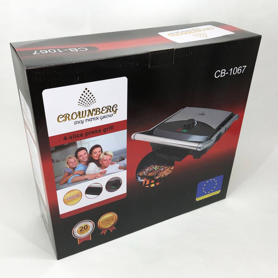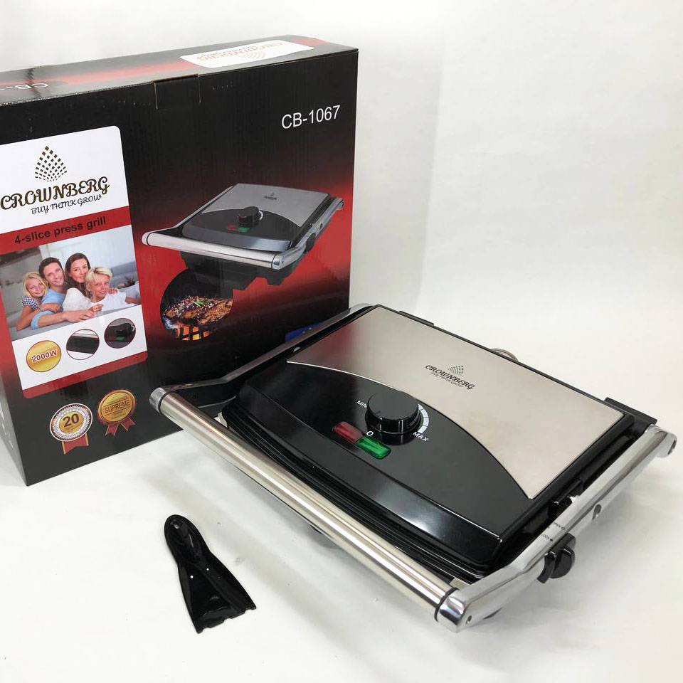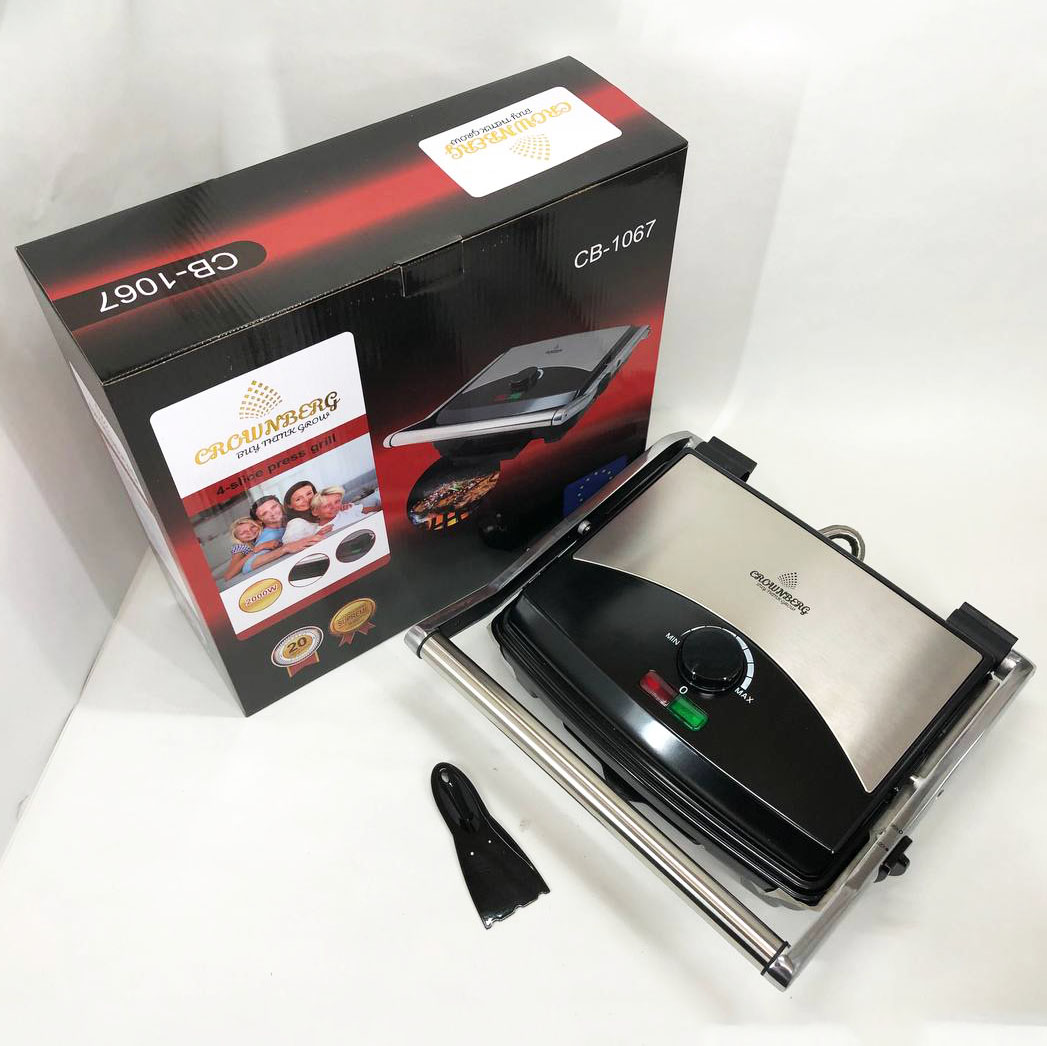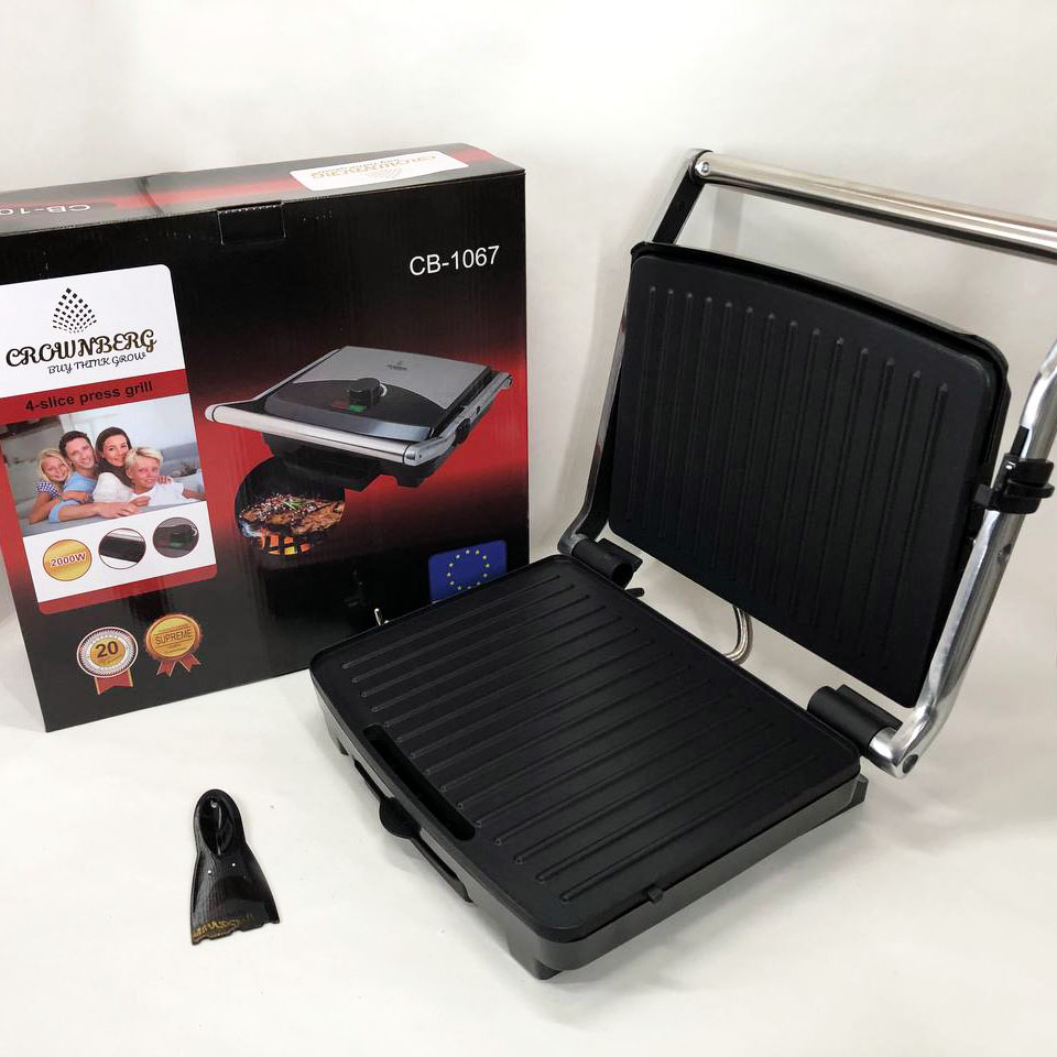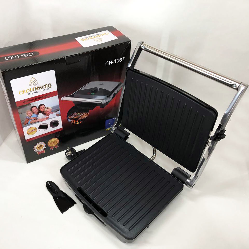 Гриль прижимной Crownberg CB-1067, Электрический контактный гриль для дома с терморегулятором 2000Вт