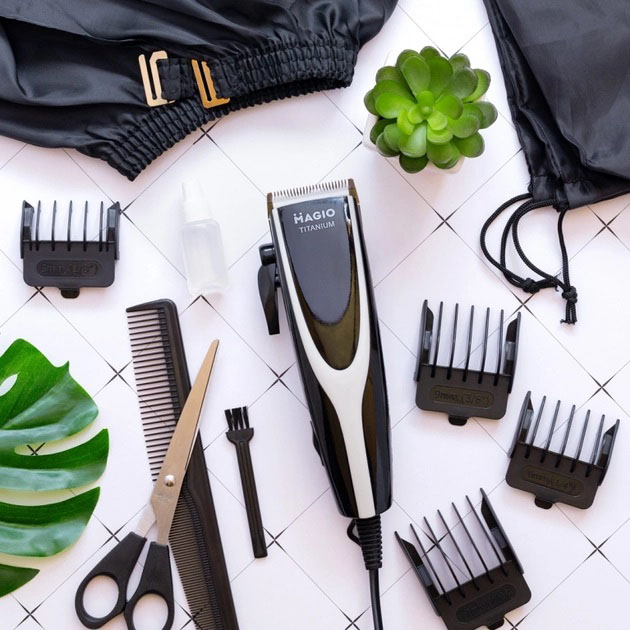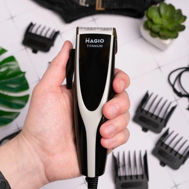 Машинка для стрижки волос Magio MG-184 позволяет не только экономить свое время, избегая очередей и предыдущих записей к парикмахеру, но и никогда не корректировать свою стрижку. Такой аксессуар будет просто незаменим для тех людей, стремящихся выглядеть безупречно. Она выполнена в стильном дизайне и проста в использовании. Мощный, но тихий мотор работает отменно и без вибраций. Лезвия с титановым покрытием позволяют машинке отлично справляться с задачей. Эргономичный черенок машинки хорошо ложится в руке, что позволяет комфортно работать. Закругленные лезвия и гребни плавно скользят по коже, не царапая ее, чтобы каждая стрижка была безопасной и приятной. Лезвия после использования можно чистить с помощью щеточки, идущей в комплекте. В наборе к этой модели вы найдете 4 гребня, позволяющие регулировать длину волос от 3 до 12 мм. Благодаря легкости и компактности эта семейная машинка для стрижки волос очень удобна в использовании и подходит взрослым и детям. В комплект также входят расческа, ножницы и масло.