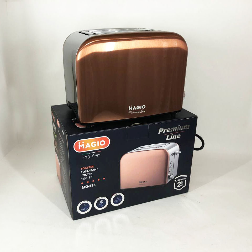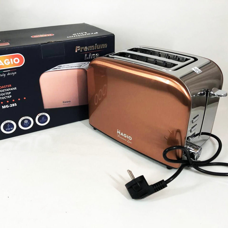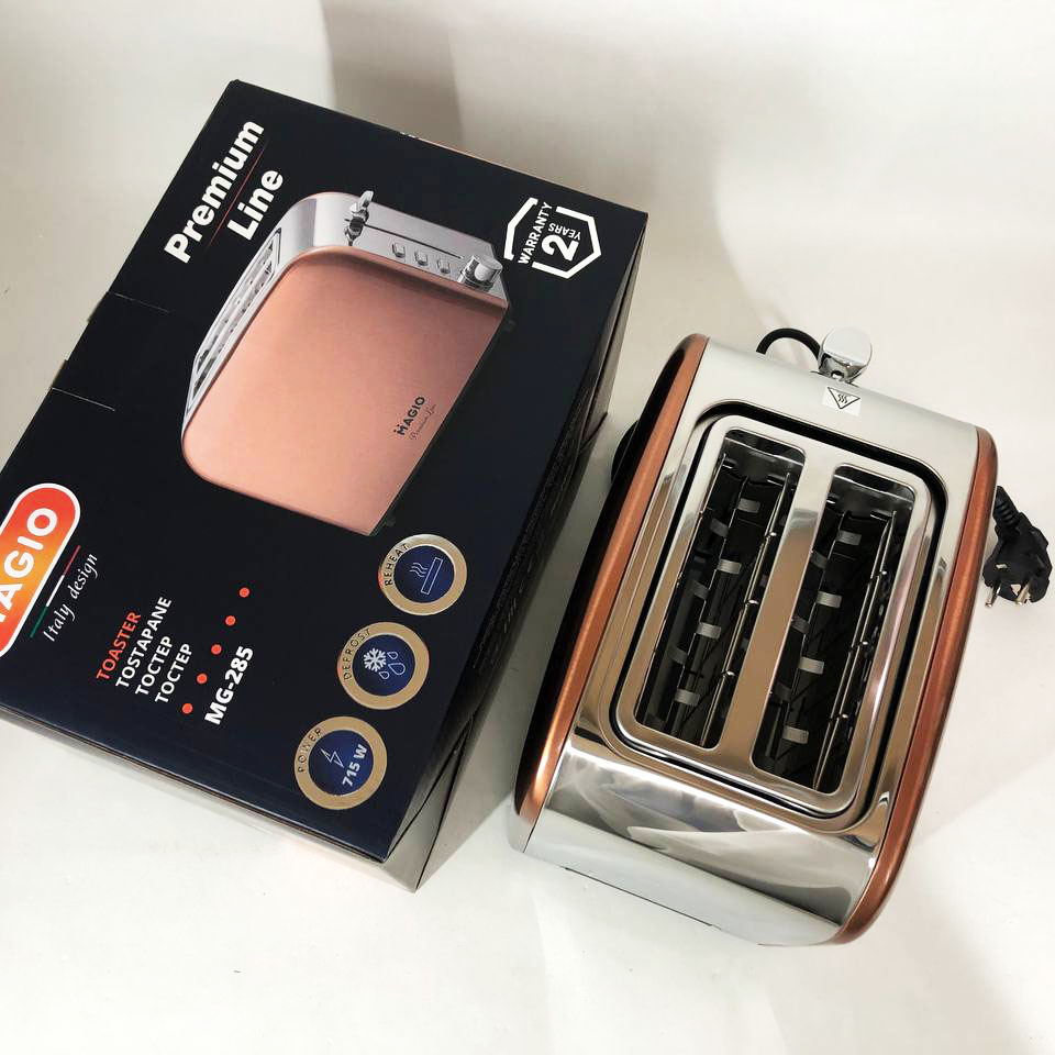 Тостер MG-285 максимально легко впишется в интерьер кухни благодаря лаконичному дизайну. Помимо дизайнерской стороны, он ещё и отлично подрумянит тосты к завтраку, так как обладает мощностью в 715 Вт.