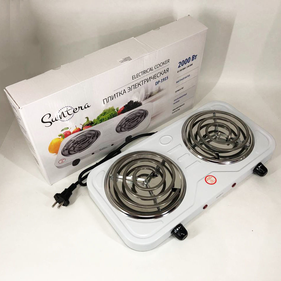 Плита электрическая Suntera DP-1915 2000 Вт, мощная настольная электроплита, плита бытовая. Цвет: белый