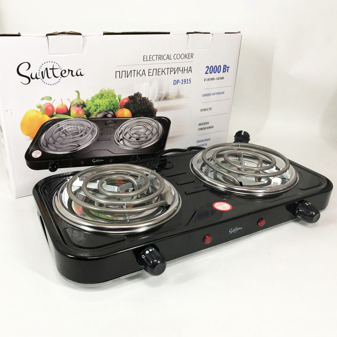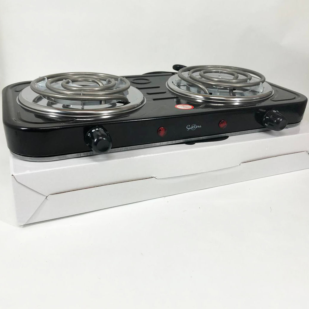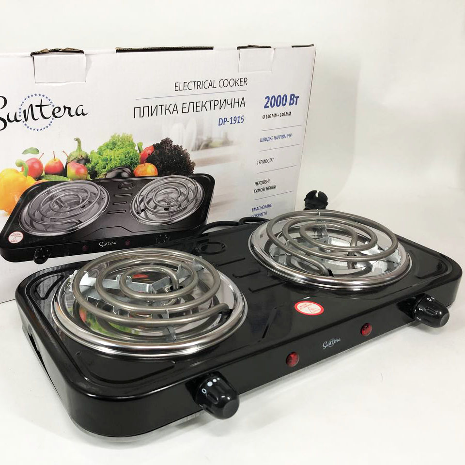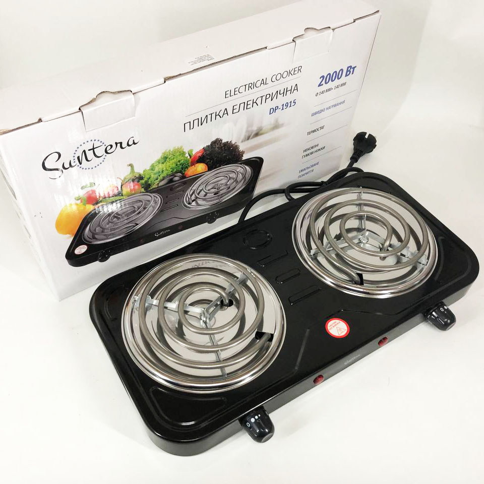 Плита электрическая Suntera DP-1915 2 кВт, электроплита 2 конфорки, плита двухкомфорочная. Цвет: черный