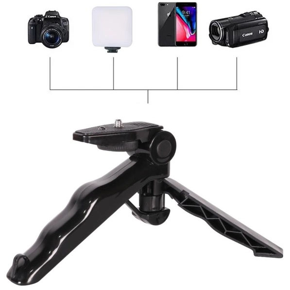 Многофункциональный трипод - может выполнять функцию как обычной настольной треноги, так и ручного мини держателя. Прибор удобно складывается и меняет свою форму. Для закрепления на нем гаджетов используется универсальное отверстие для шурупа ¼ дюйма. Такой вид крепления позволяет с легкостью установить на нем камеру, фотоаппарат, телефон, светодиодную панель и другие аксессуары.
