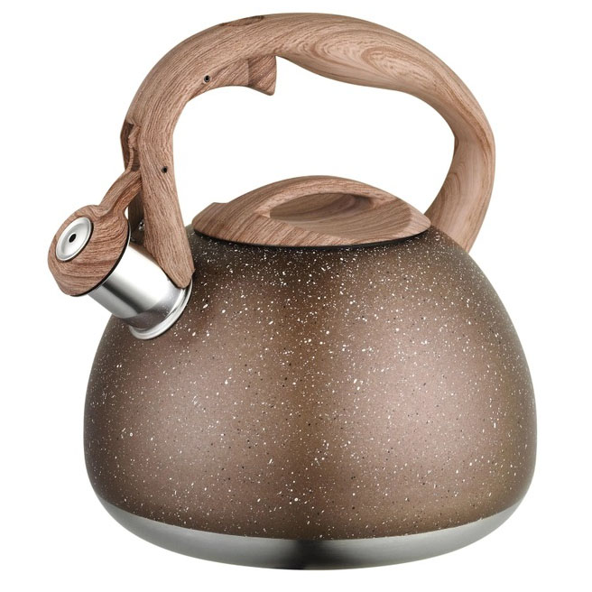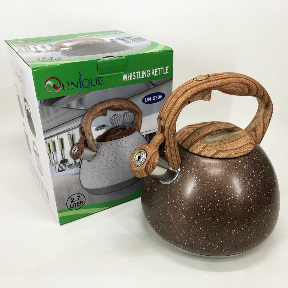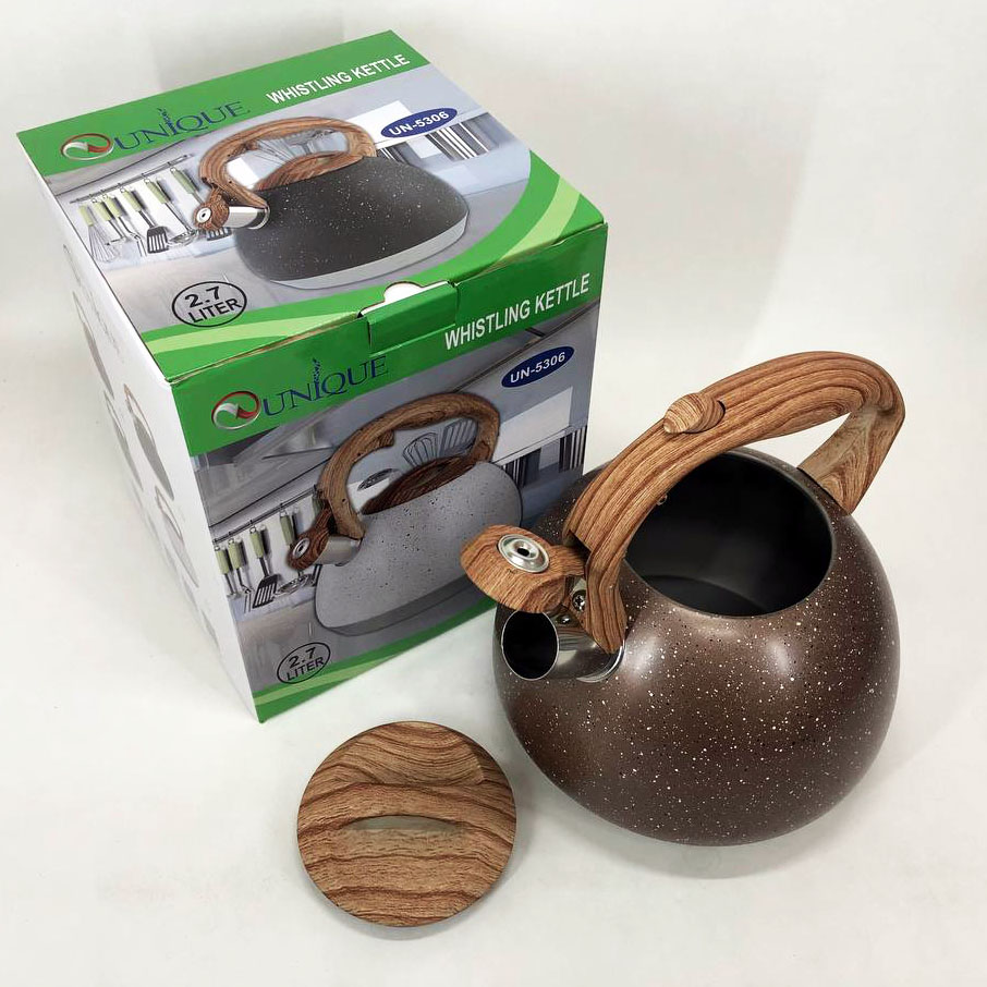 Чайник Unique со свистком UN-5306 2,7л мрамор, качественный чайник для газовой плиты. Цвет: коричневый
