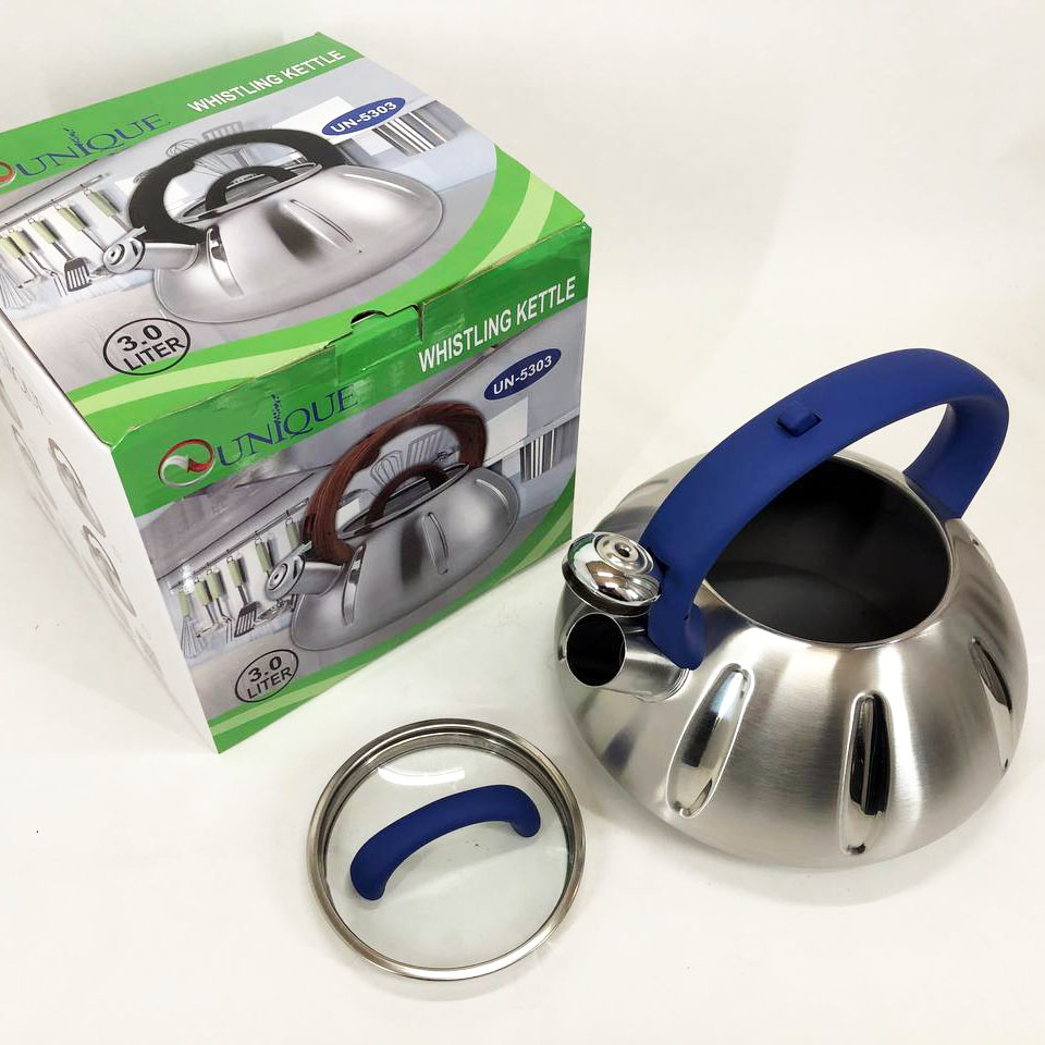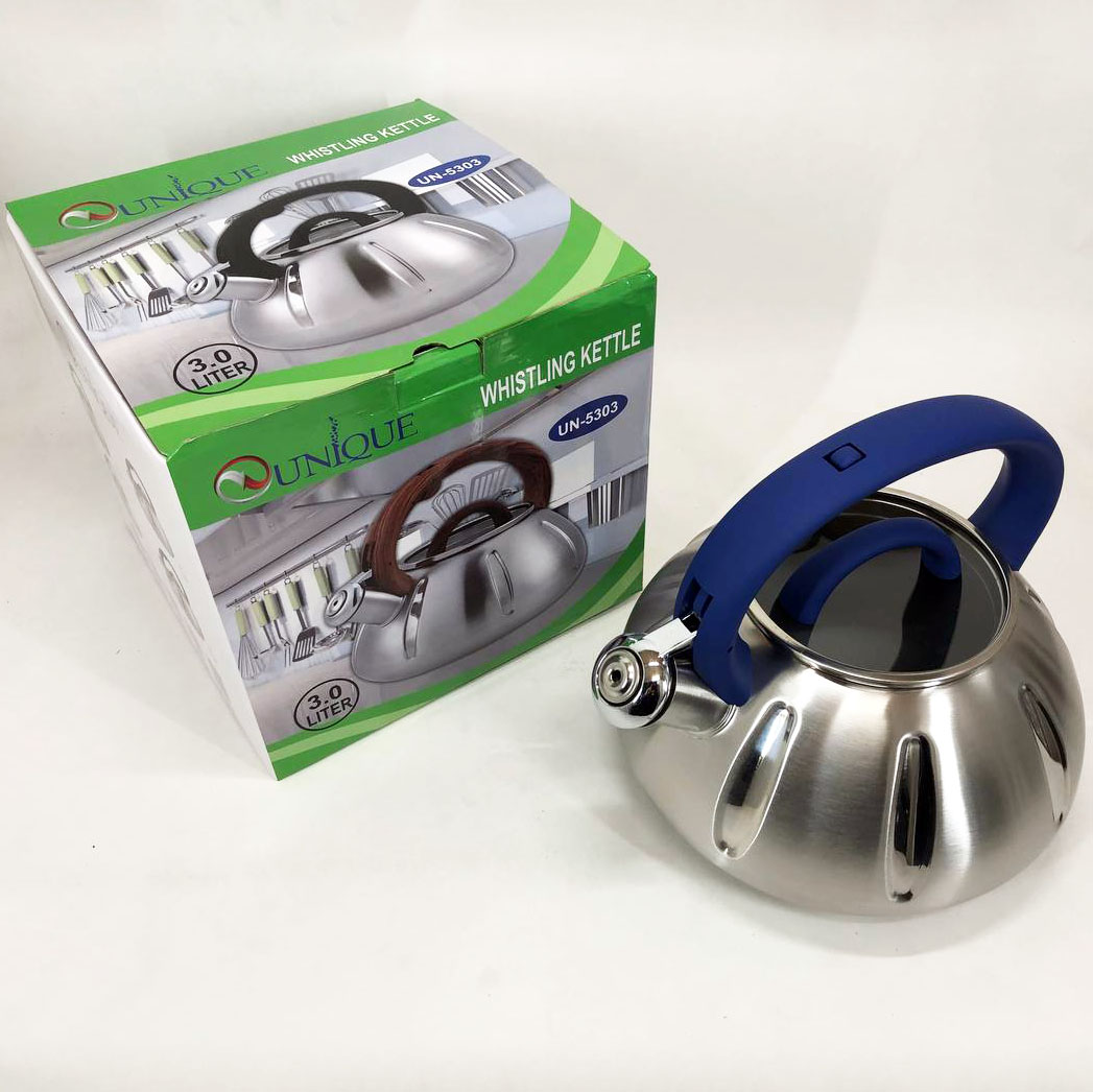 Чайник со свистком Unique UN-5303 кухонный на 3 литра, чайник для газовой плитки. Цвет: синий