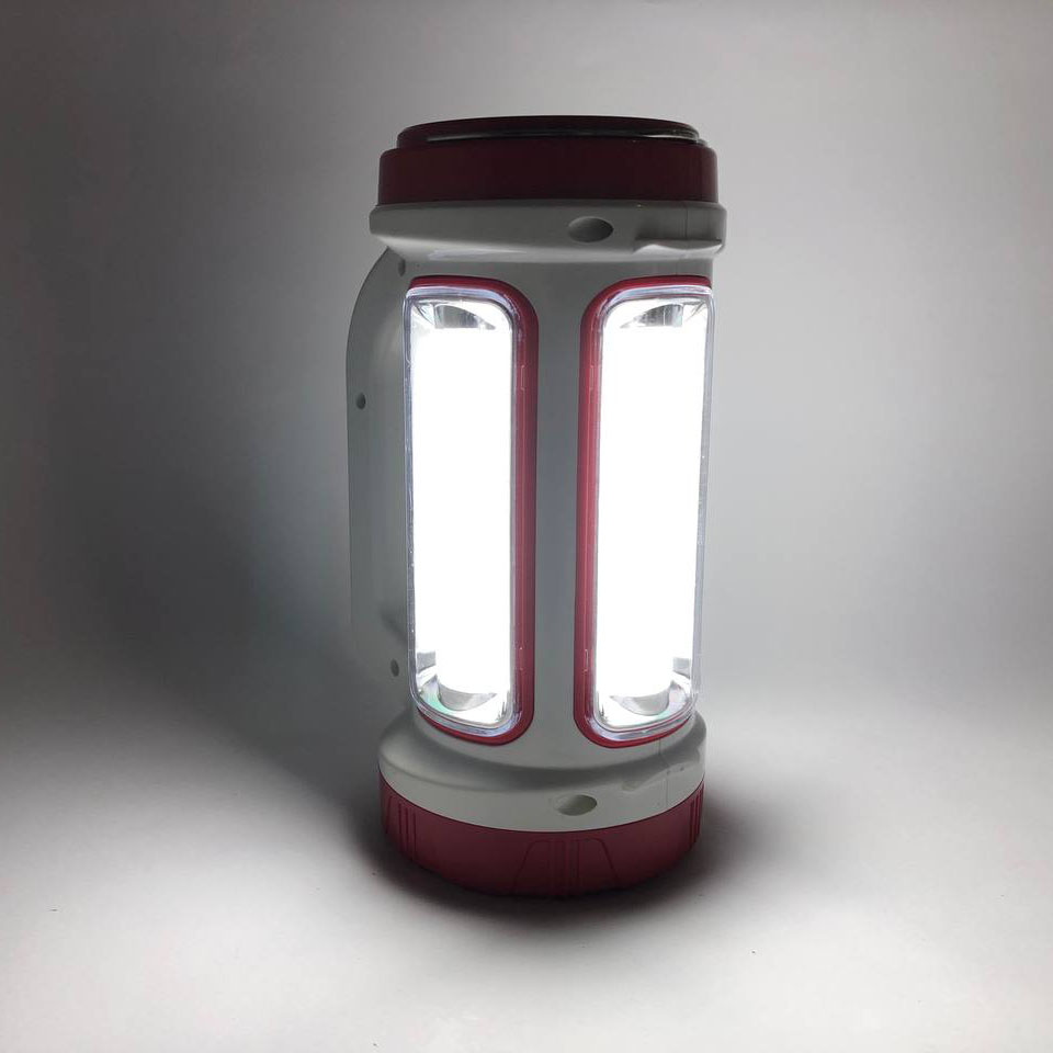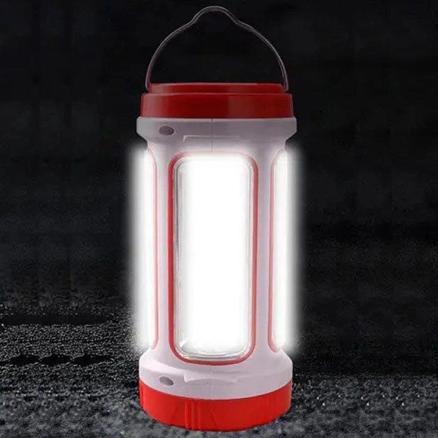 Переносной фонарь-повербанк на солнечной батарее D-5158 имеет центральный мощный фонарь 3 W (он дает очень яркий с четко выраженным фокусом луч света и более тусклым светом по окружности). Такое решение освещенности одновременно можно использовать и для освещения дороги и для просмотра окружающего вдалеке пространства. На корпусе по периметру фонарика D-5158 расположен трех сторонний светильник с матовым светофильтром. С помощью металлической душки можно подвесить фонарь над столом, что так же добавит дополнительный комфорт в ночное время.