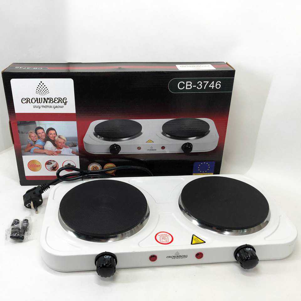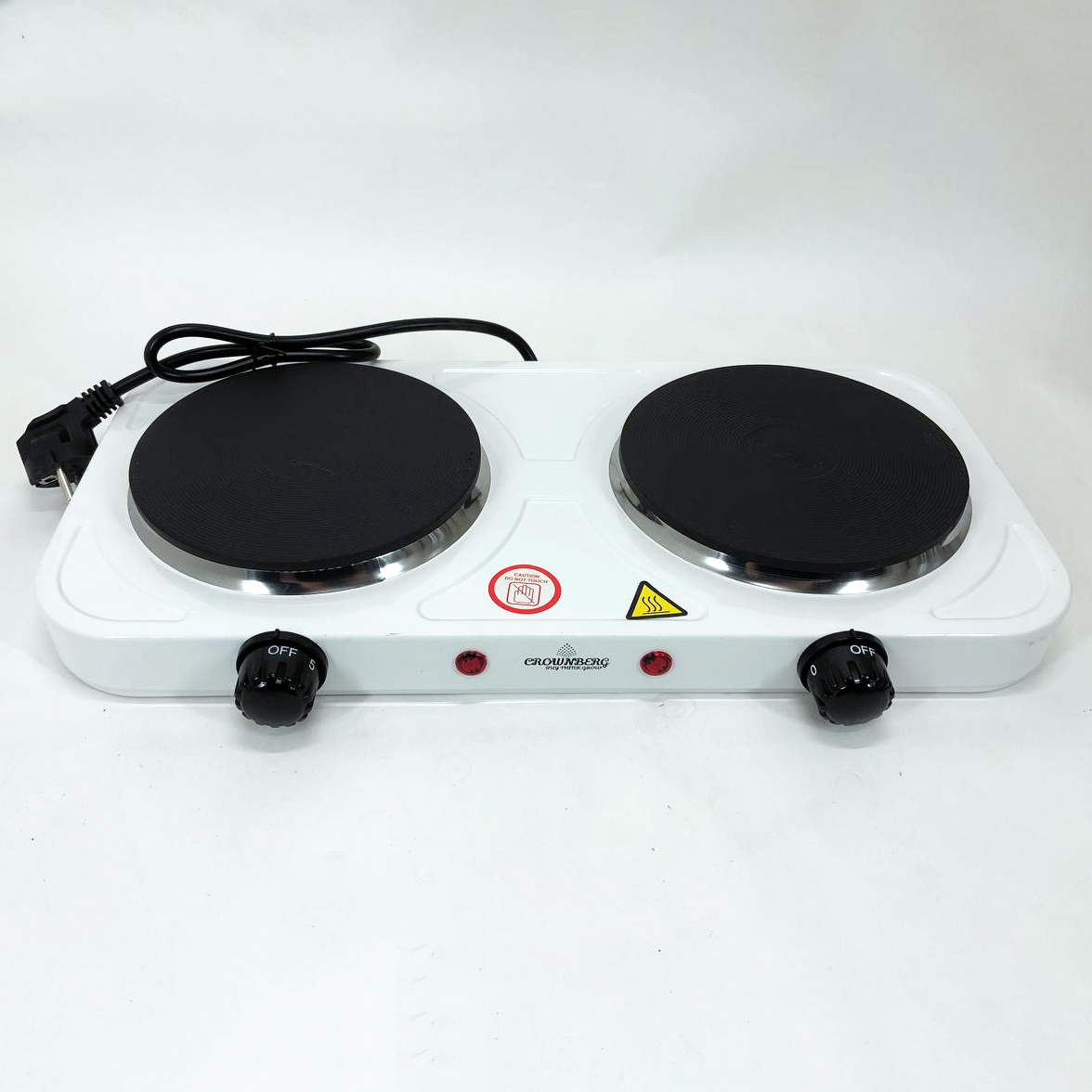 Плита электрическая настольная бытовая Crownberg CB-3746 двухконфорочная дисковая кухонная плита 2000 Вт