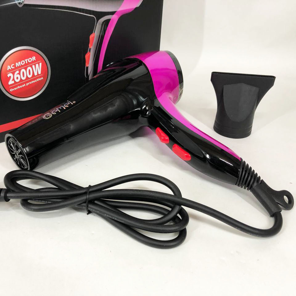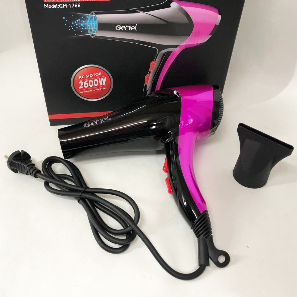 Фен GEMEI GM-1766 2.6 кВт АС – удобный и практичный инструмент, отличается ярким стильным дизайном и доступной ценой с широким набором функций. Он бережно и быстро высушит волосы, также Вы сможете придать волосам эффектную форму и объем, и зафиксировать их с помощью функции “холодный воздух”. Благодаря мощности в 2600 Вт, выходящий воздух нагревается практически мгновенно. Вы можете регулировать скорость потока воздуха и температуру нагрева. Отключение модели при перегреве позволит продлить срок его службы и обеспечит его наиболее безопасную эксплуатацию.
