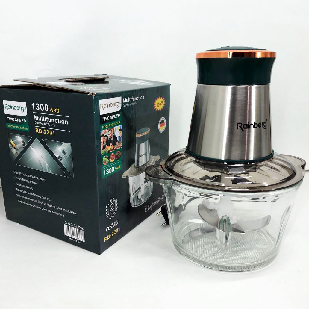 Блендер стационарный Rainberg RB-2201 измельчитель кухонный 1300W стекло на 2 л двойное лезвие чоппер