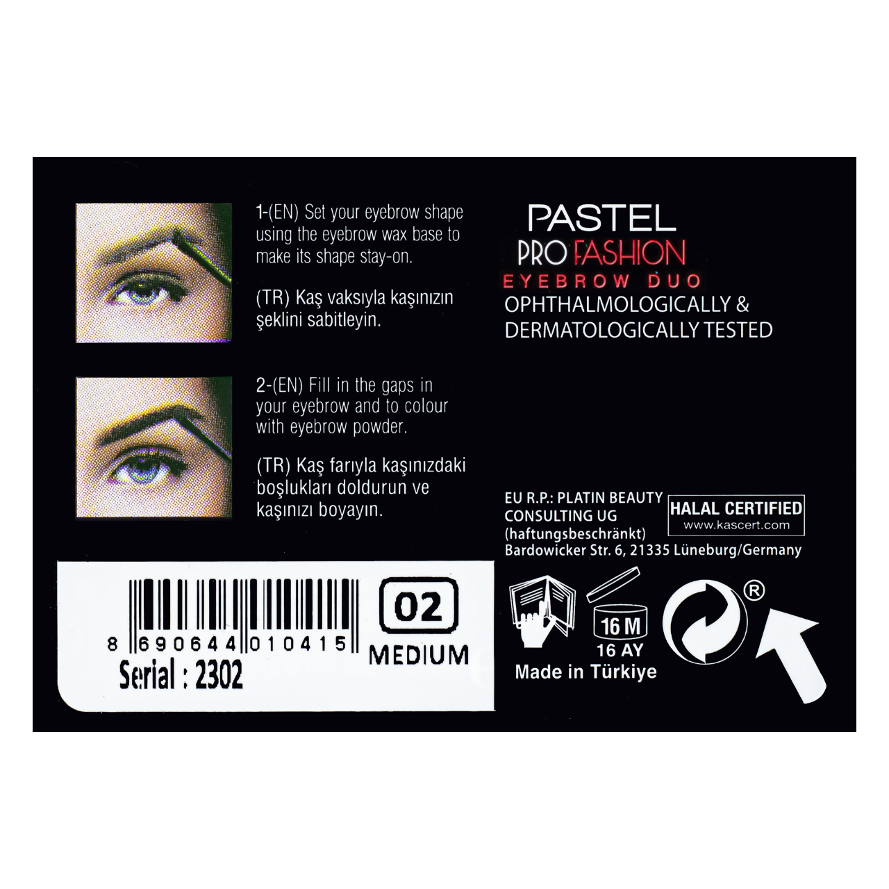 Набір для корекції брів тіні та віск Pastel Profession Eyebrow Duo, 02 MEDIUM