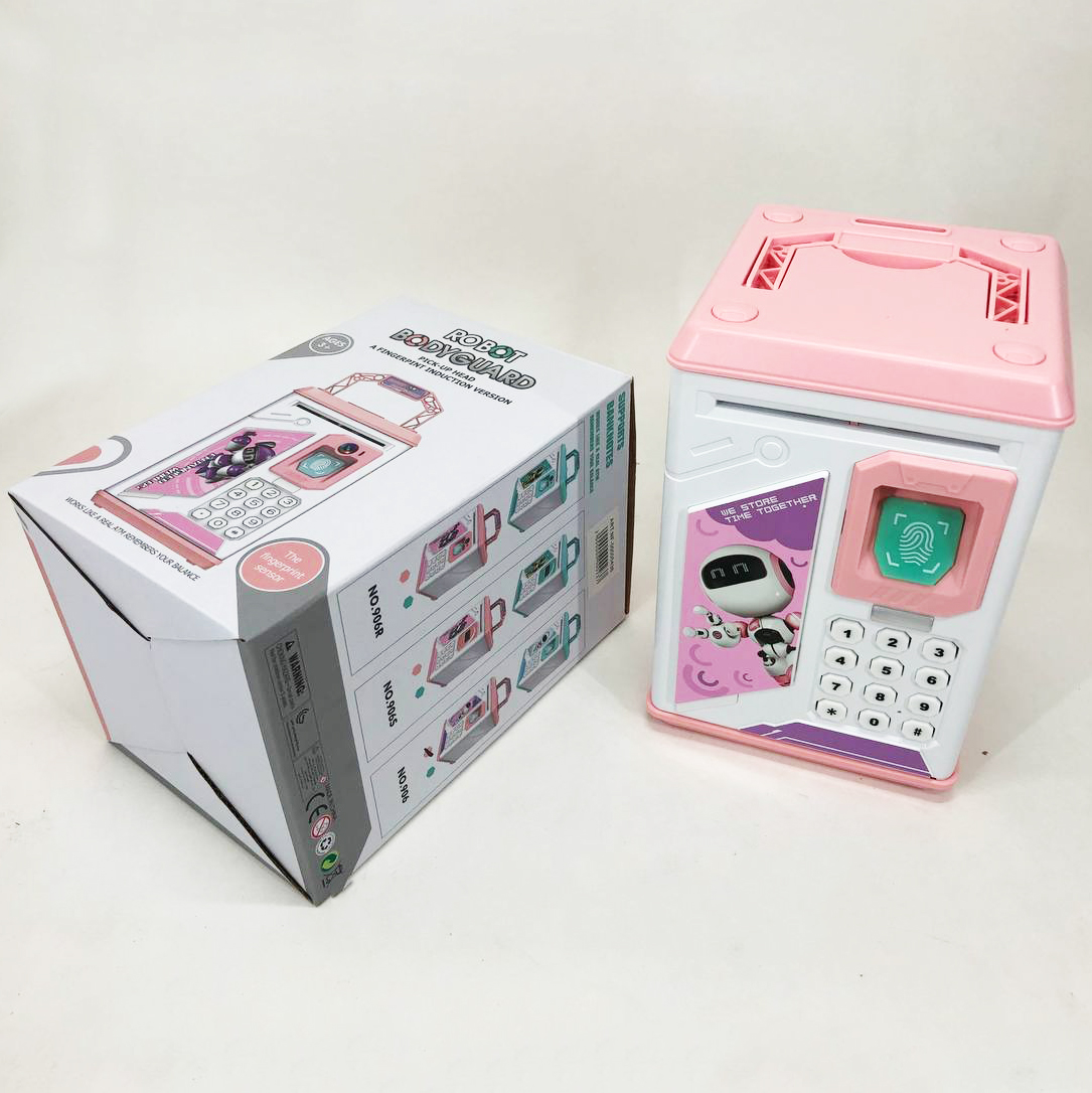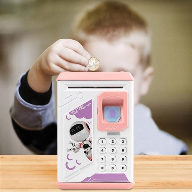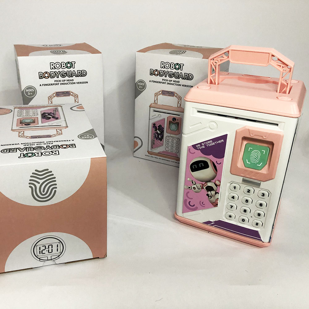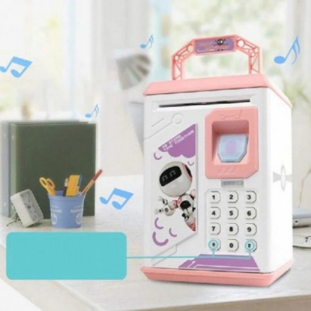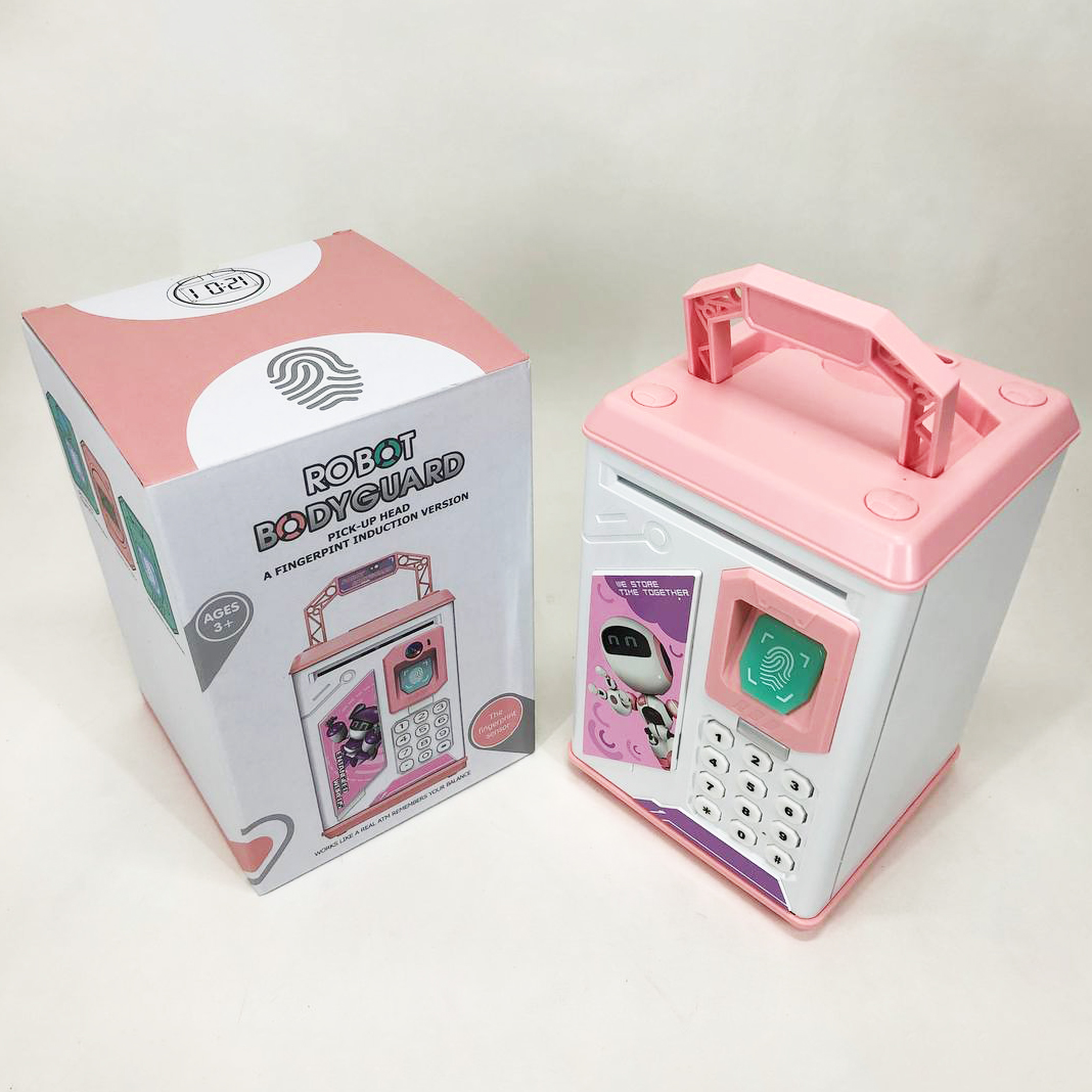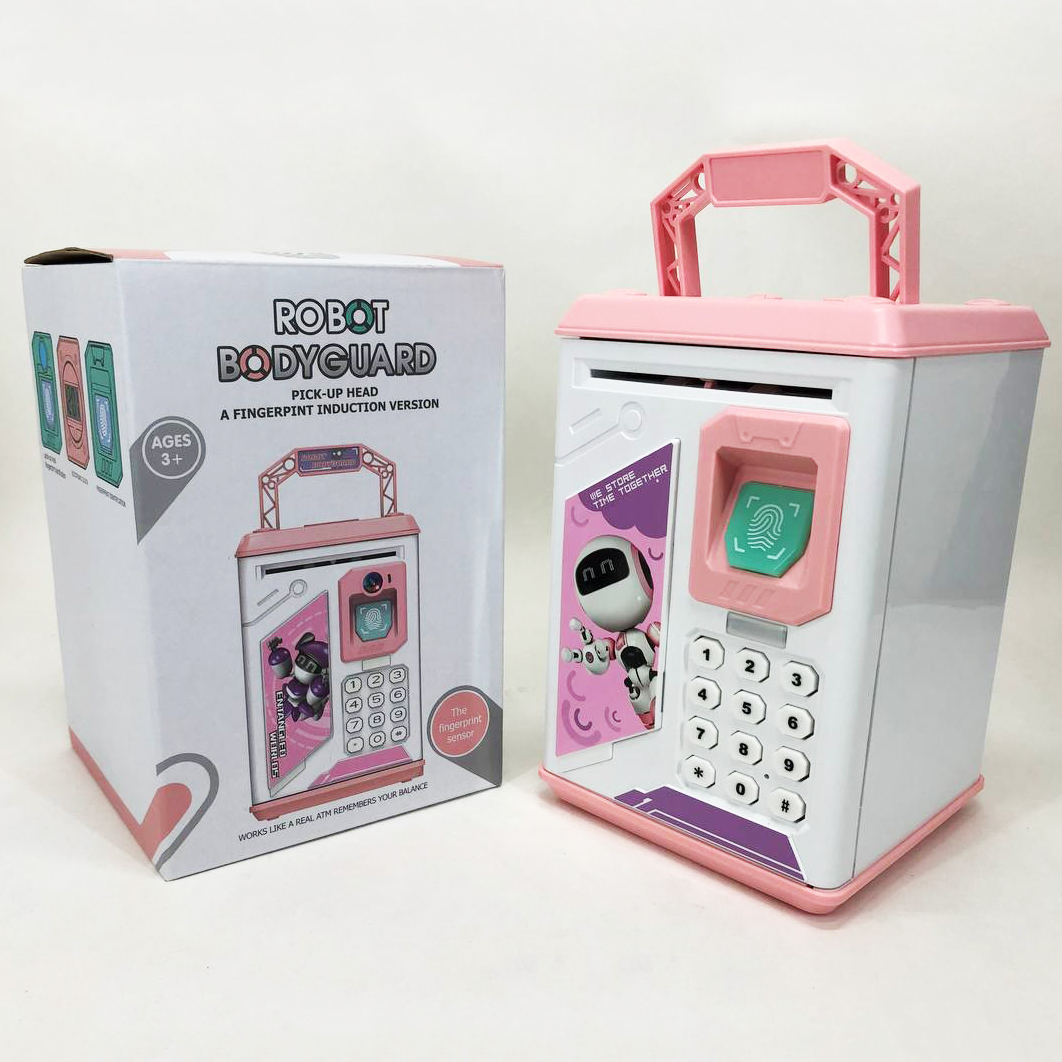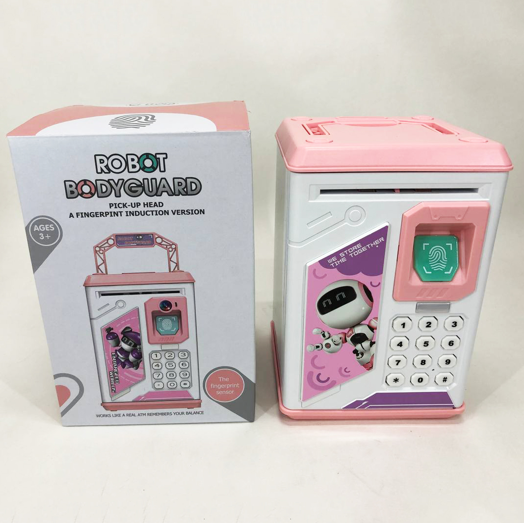 Копилка-сейф ROBOT BODYGUARD с кодовым замком отпечатком пальца и купюроприемником. Цвет: розовый