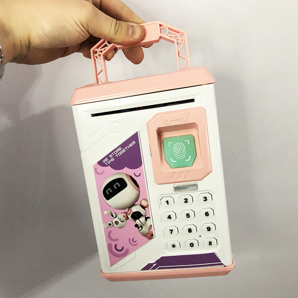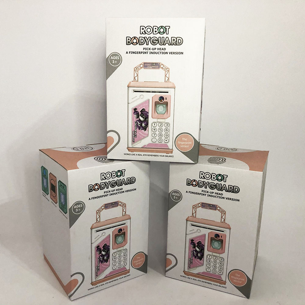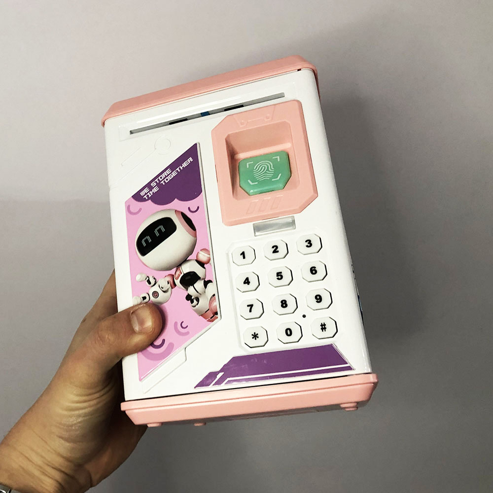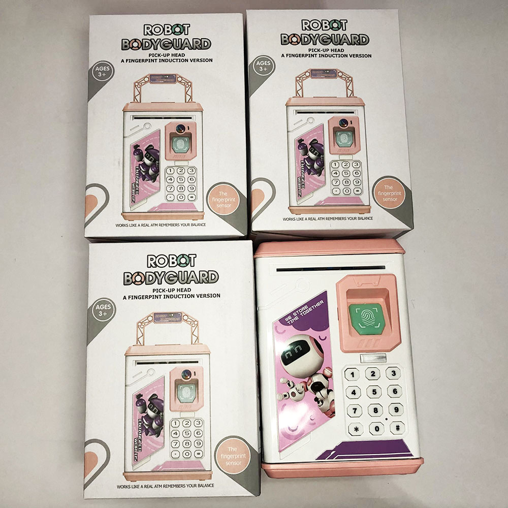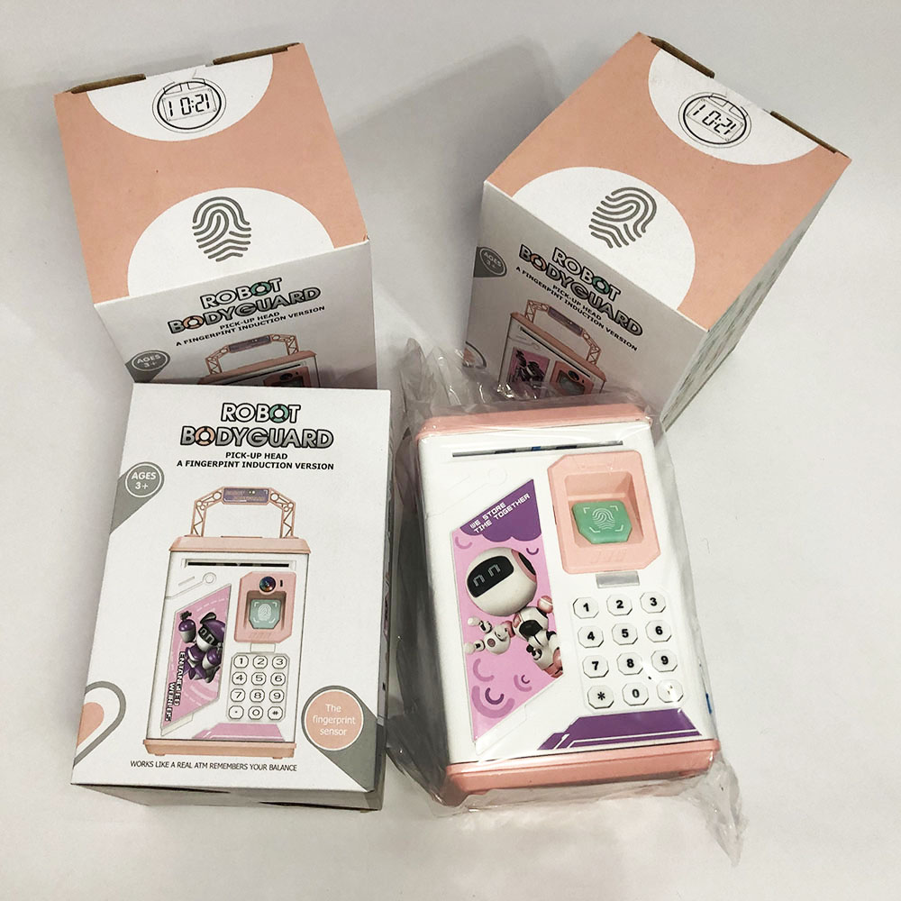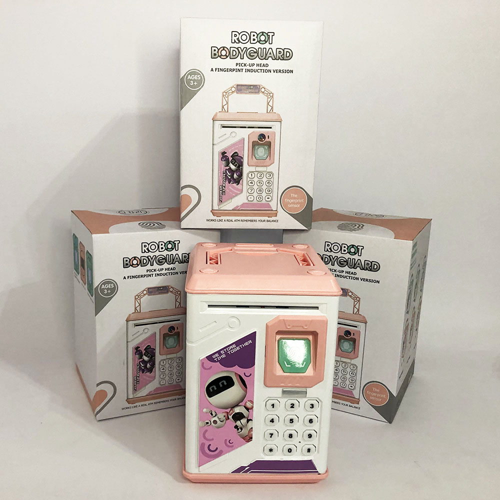 Копилка-сейф ROBOT BODYGUARD с кодовым замком отпечатком пальца и купюроприемником. Цвет: розовый