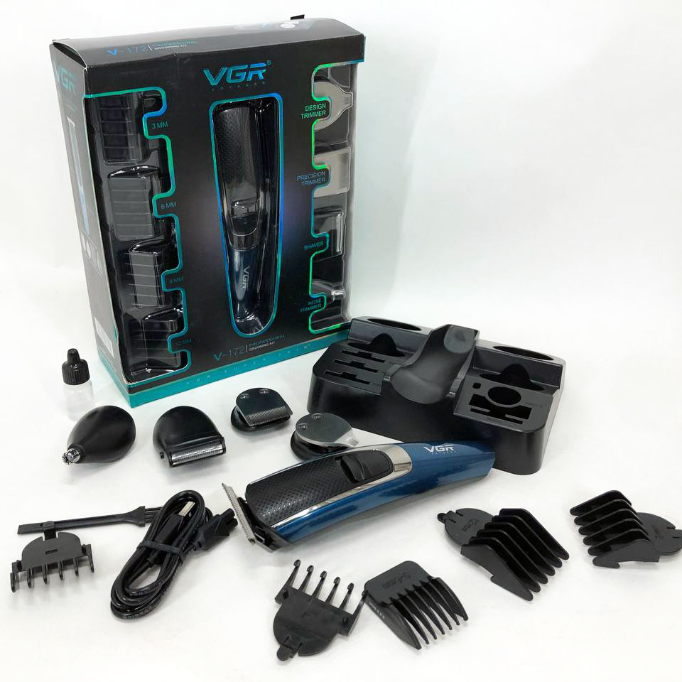 Машинка триммер 4в1 VGR V-172 для стрижки волос на аккумуляторе зарядка USB, электробритва для головы