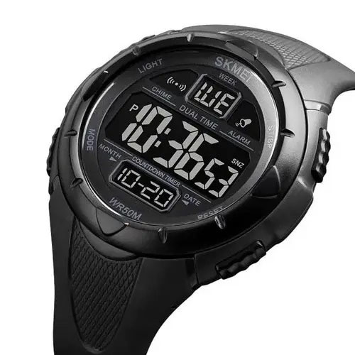 SKMEI 1656BK оборудован всеми необходимыми функциями для вашего комфорта: двойное время, секундомер, будильник, таймер обратного отсчета, подсветка, индикация даты и дня недели. Благодаря водонепроницаемости до 50 метров часы не боятся дождя, мытья рук и других повседневных ситуаций с водой.