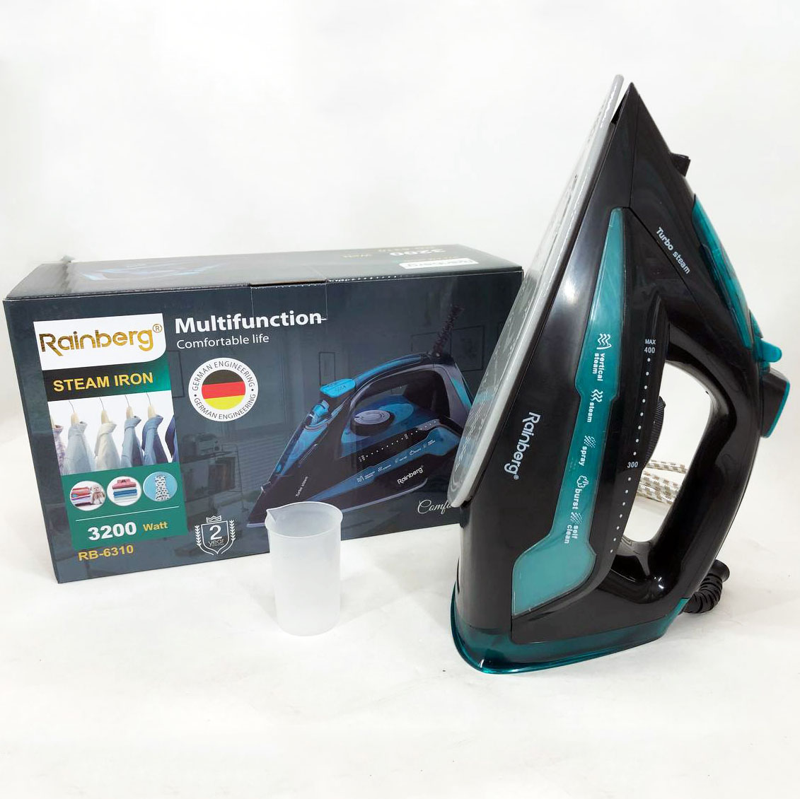 Утюг Rainberg RB-6310 3200W, паровой утюг, керамическая подошва, мощный утюг, утюг гладильный