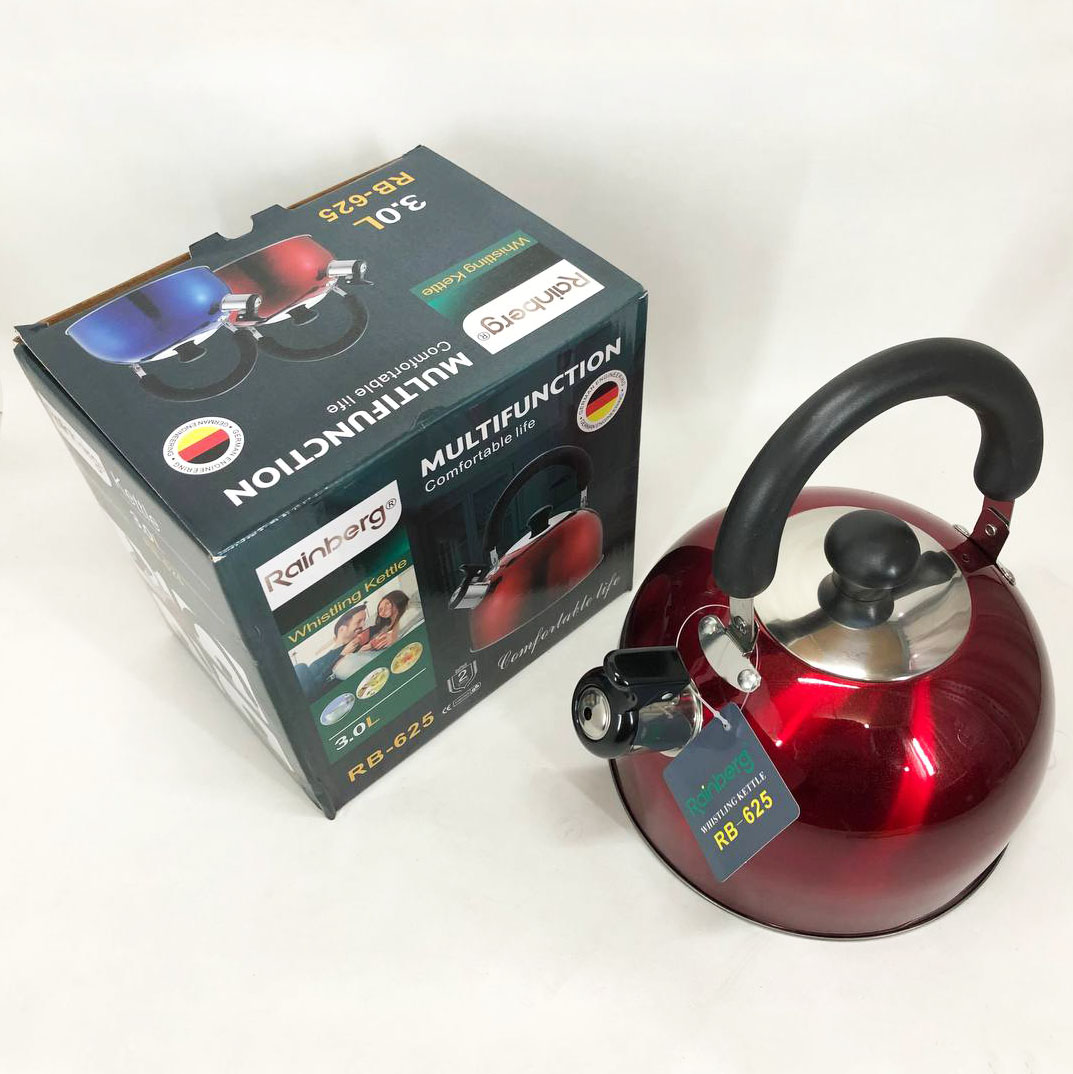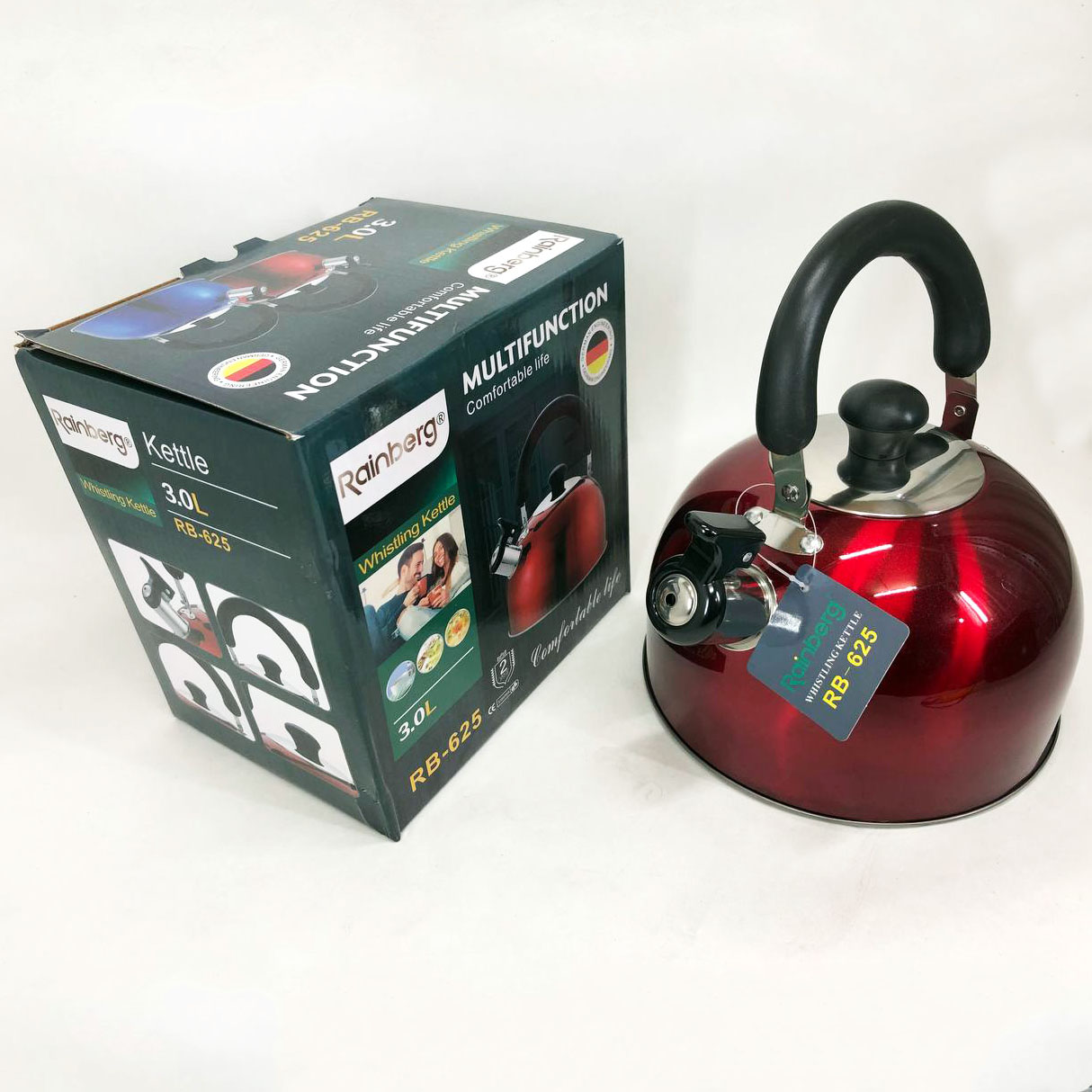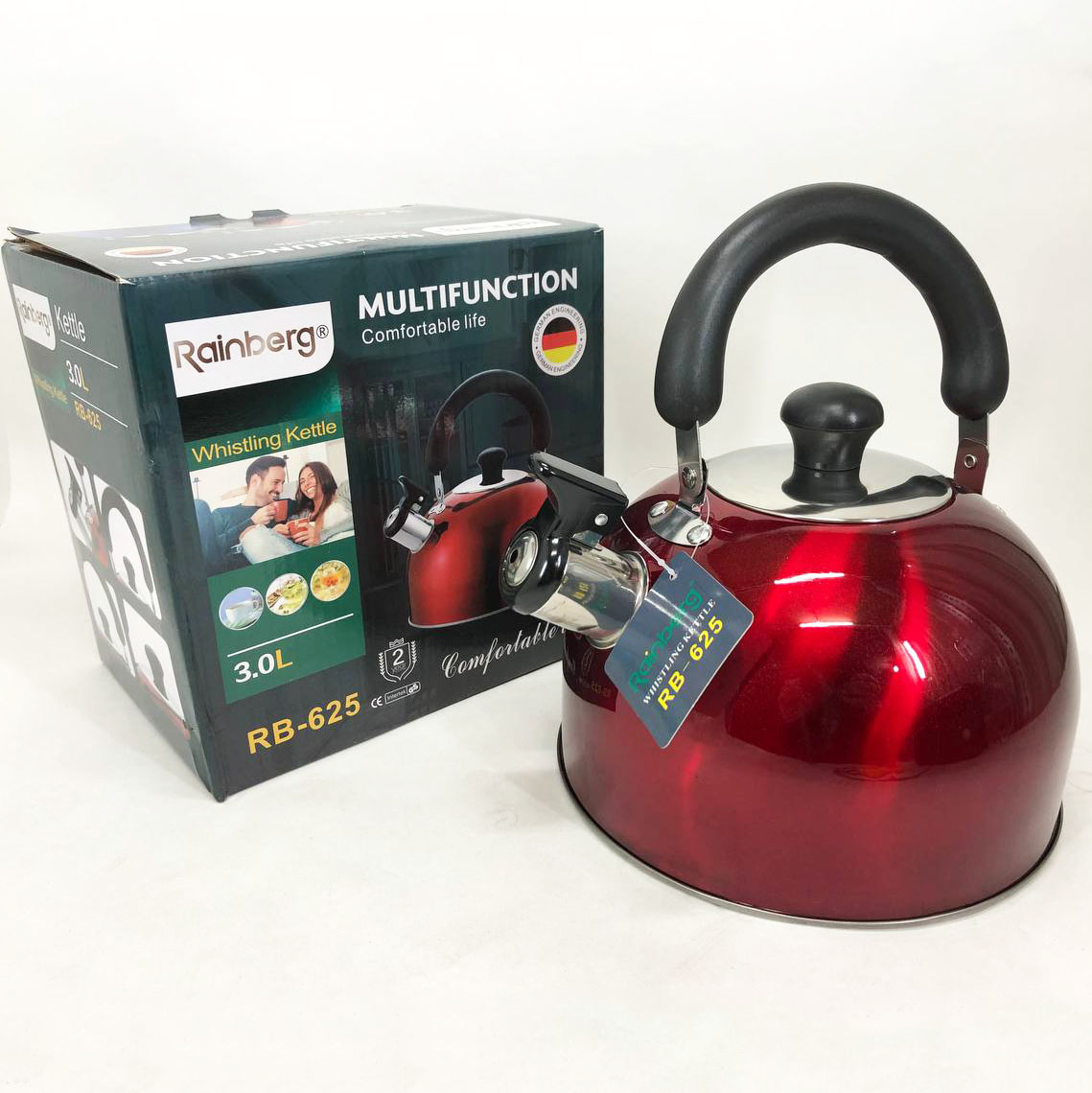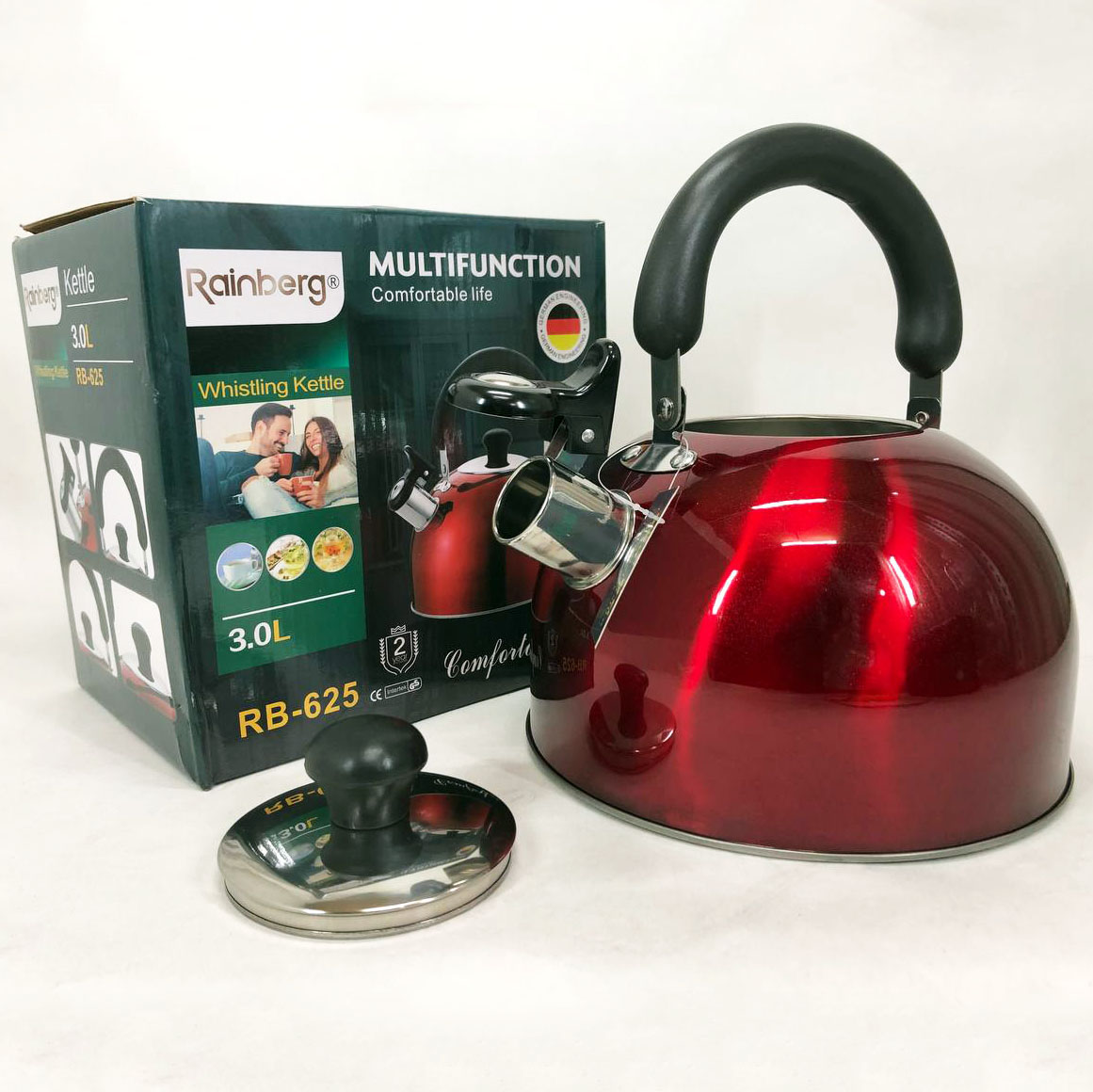 Чайник Rainberg RB-625 из нержавеющей стали со свистком 3л, хороший чайник со свистком. Цвет: красный