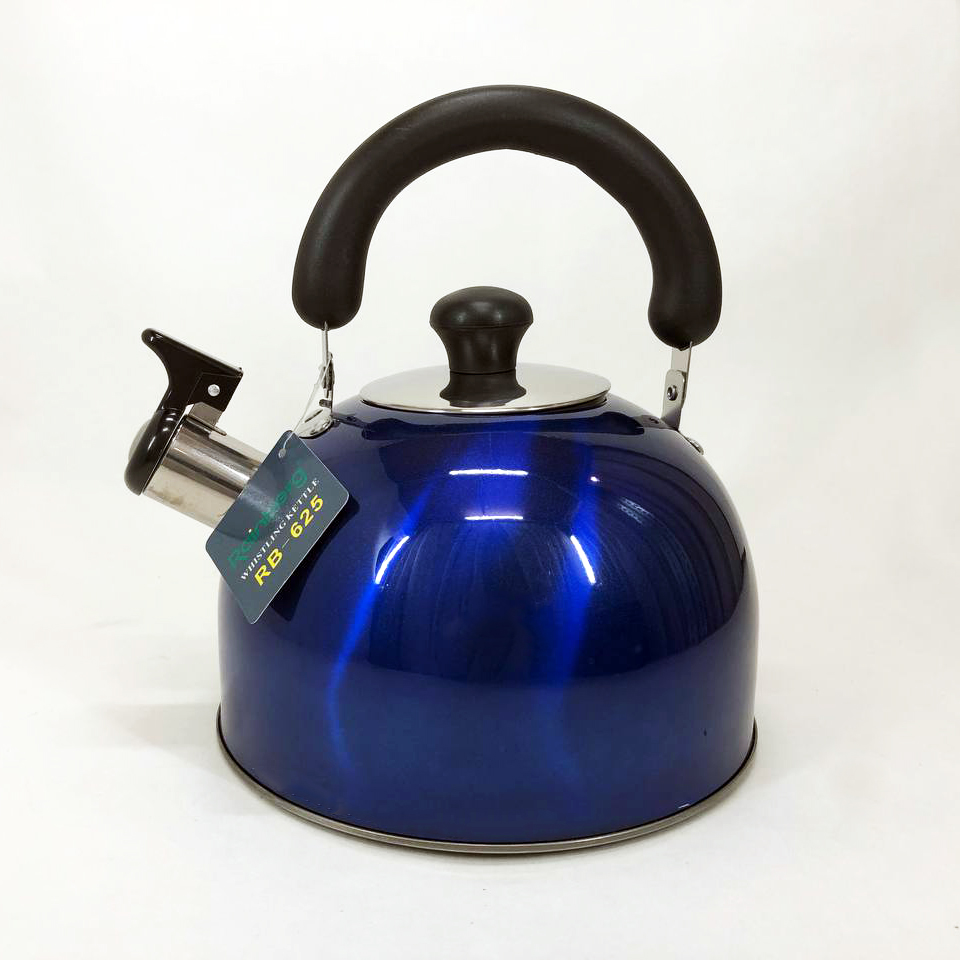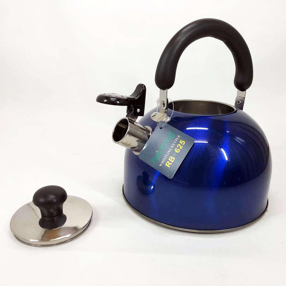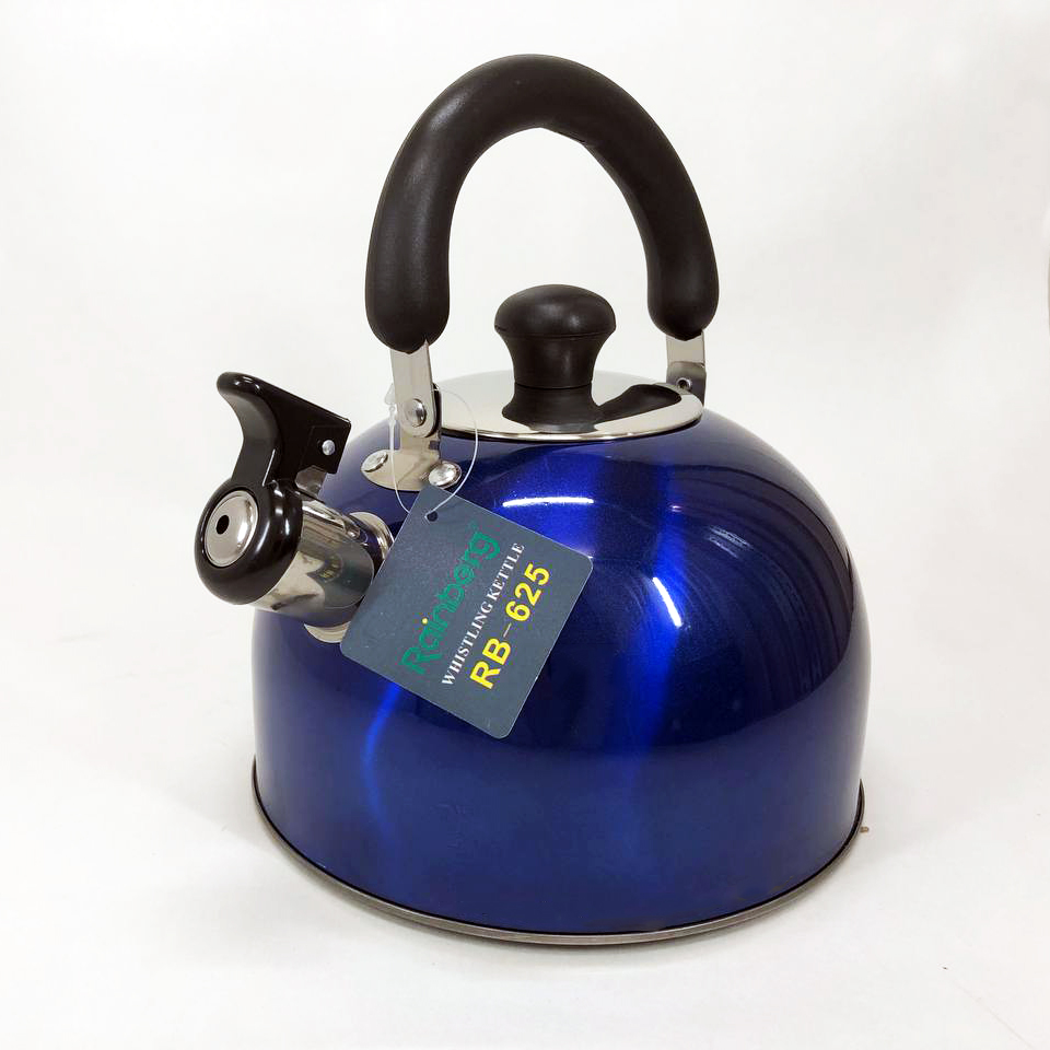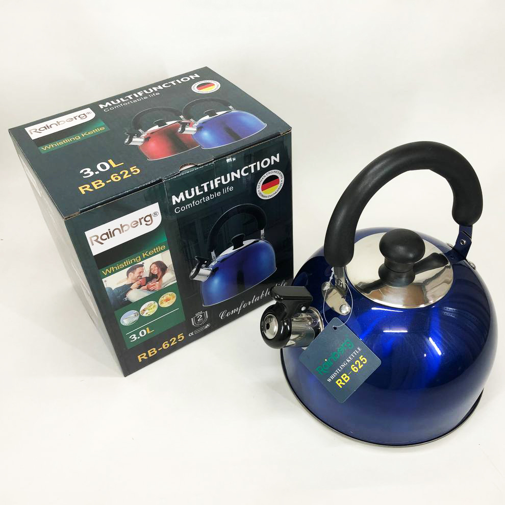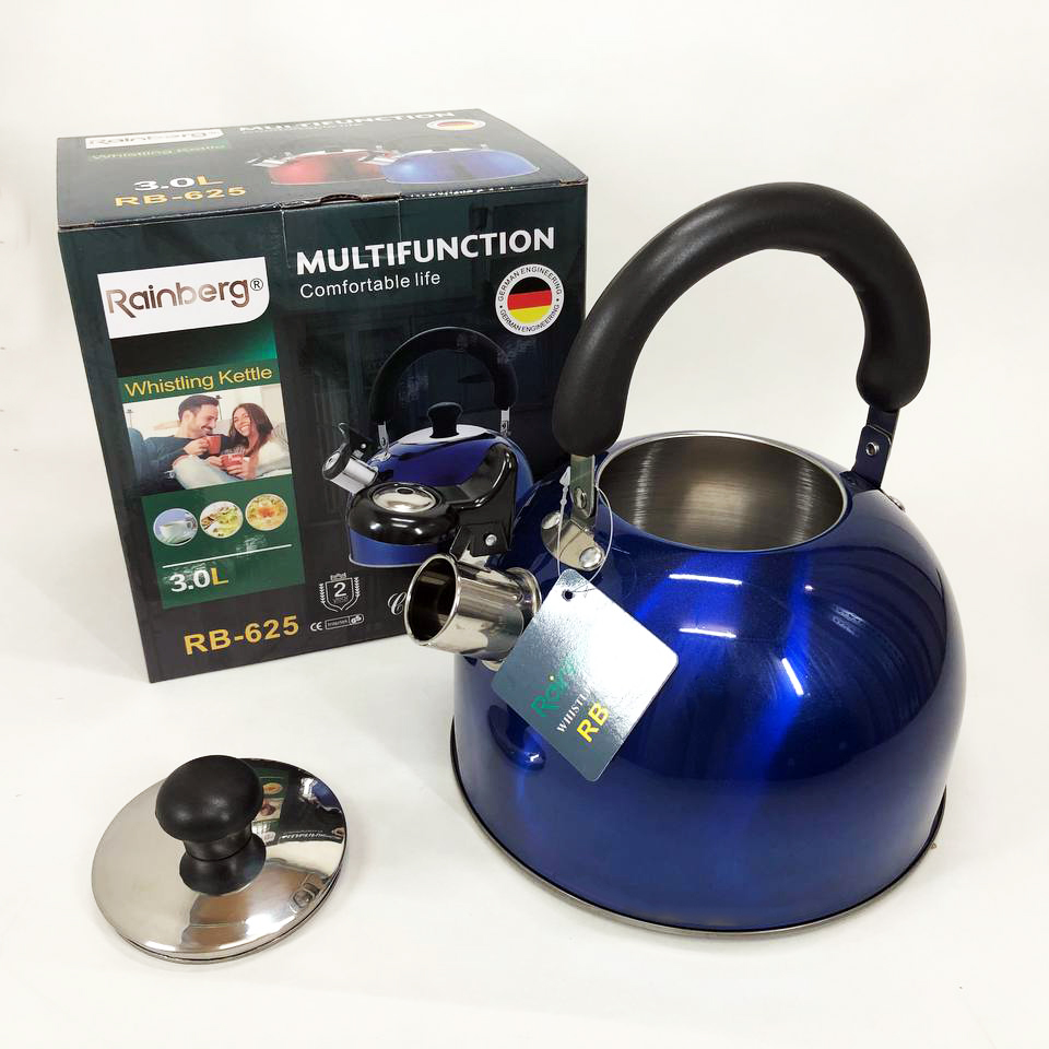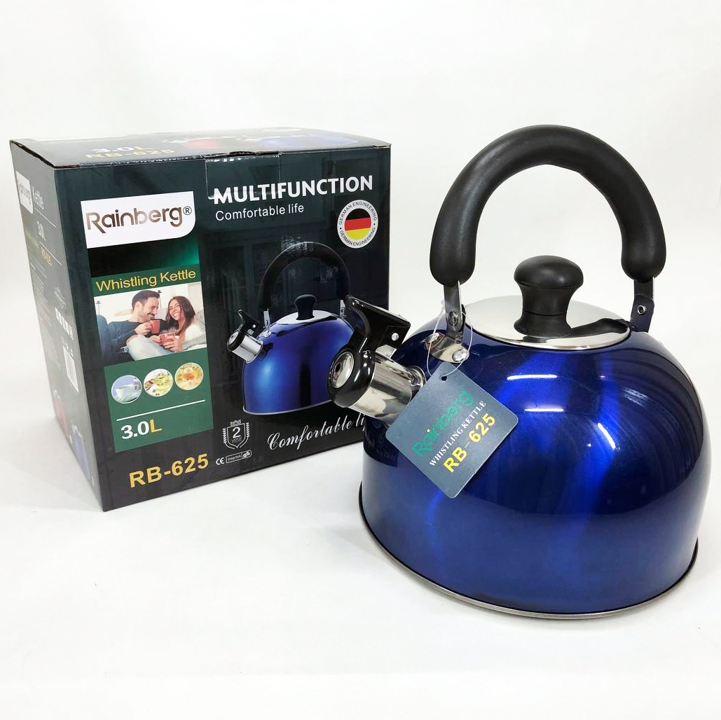 Чайник Rainberg RB-625 из нержавеющей стали со свистком 3л красивый чайник для газовой плиты. Цвет: синий