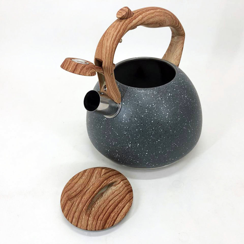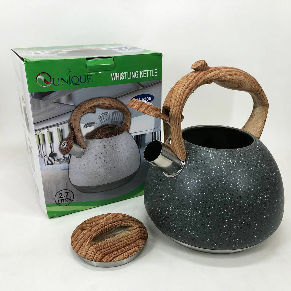 Чайник Unique со свистком UN-5306 2,7л мрамор, для газовых плит, чайник нержавейка. Цвет: темно-серый