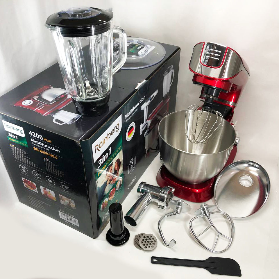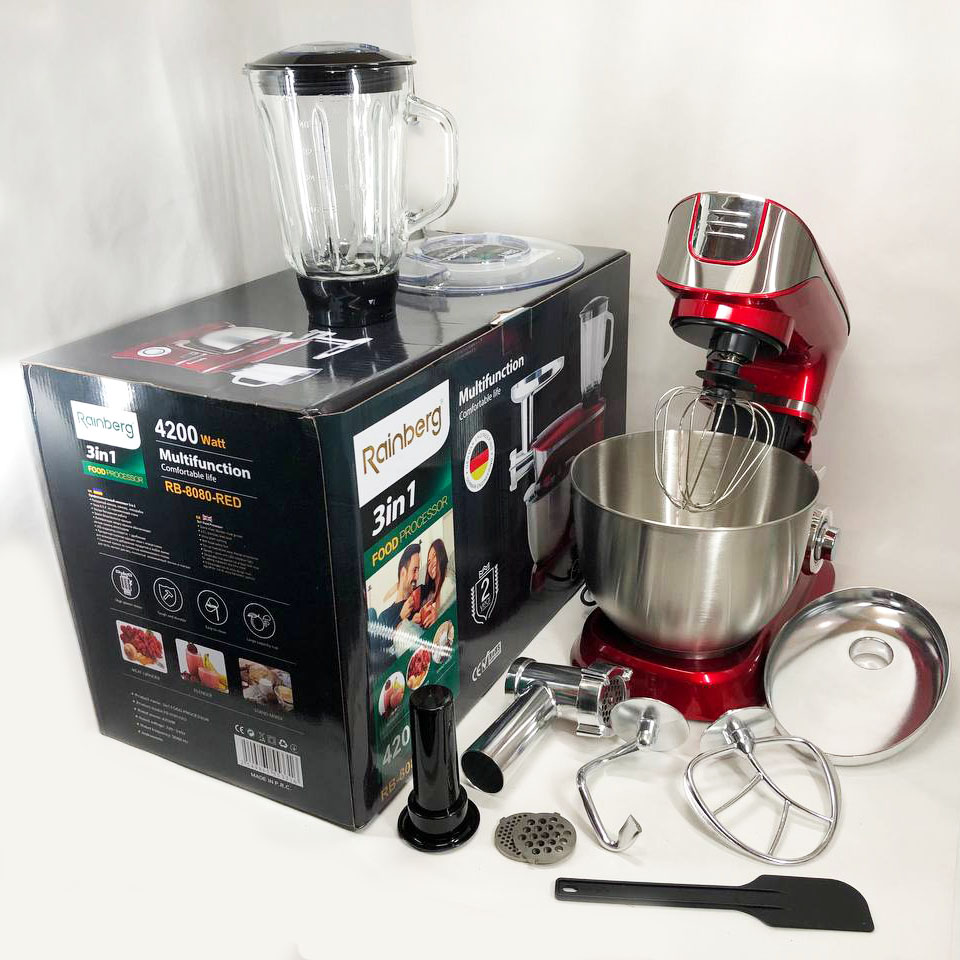 Многофункциональный кухонный комбайн Rainberg RB-8080 Тестомес, Мясорубка, Блендер, Мощный блендер