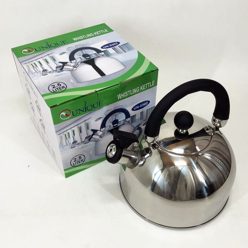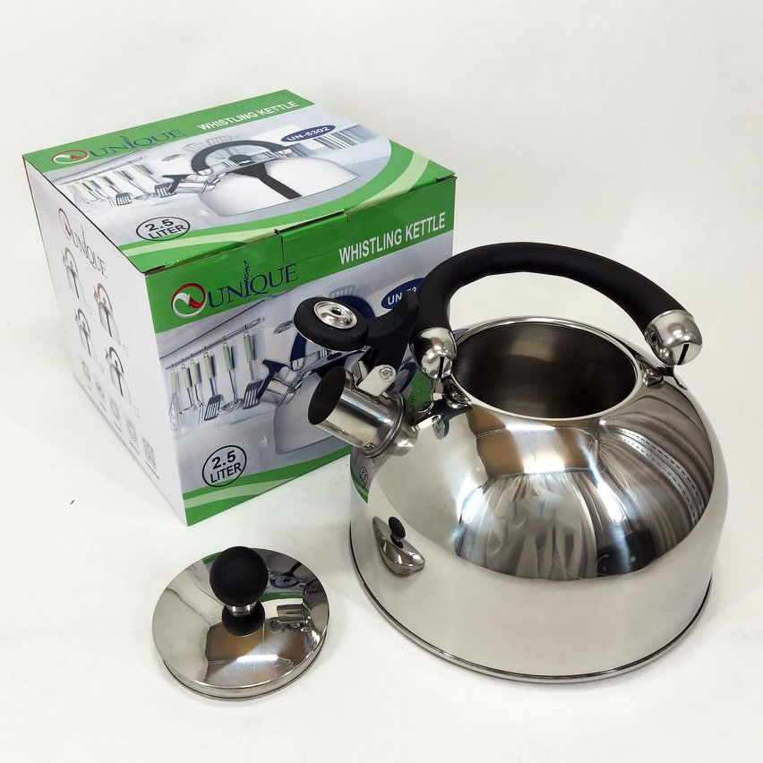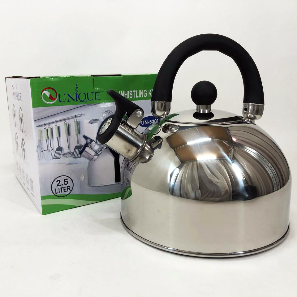 Чайник Unique со свистком UN-5302 2,5л, красивый чайник для газовой плиты, чайник на плиту. Цвет: черный