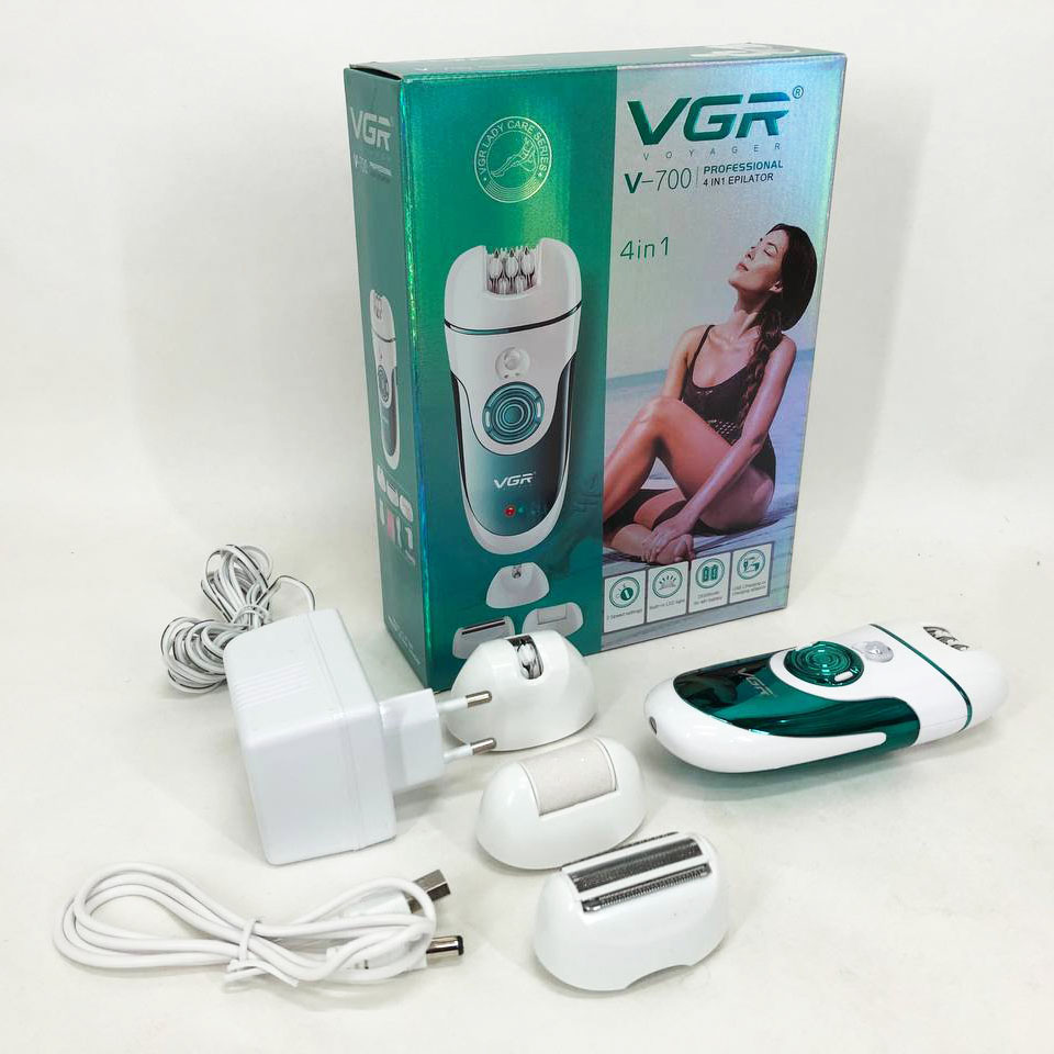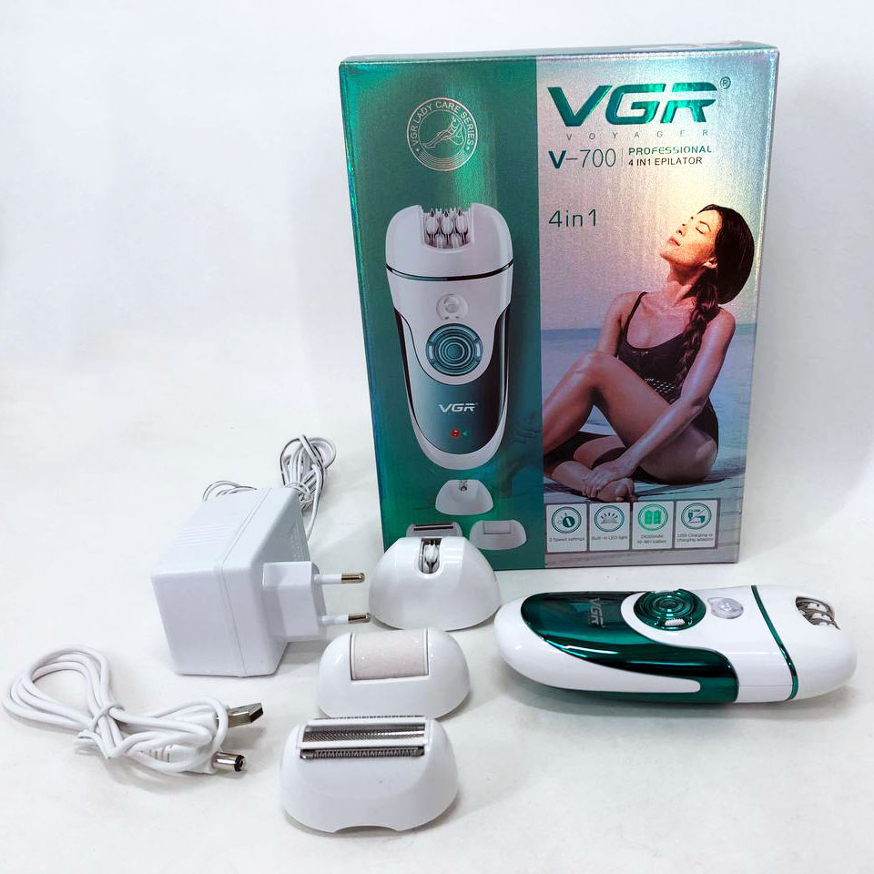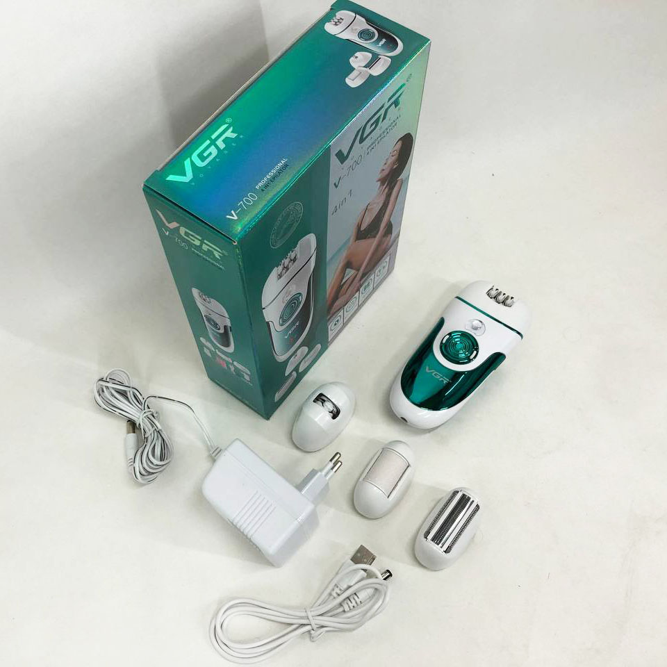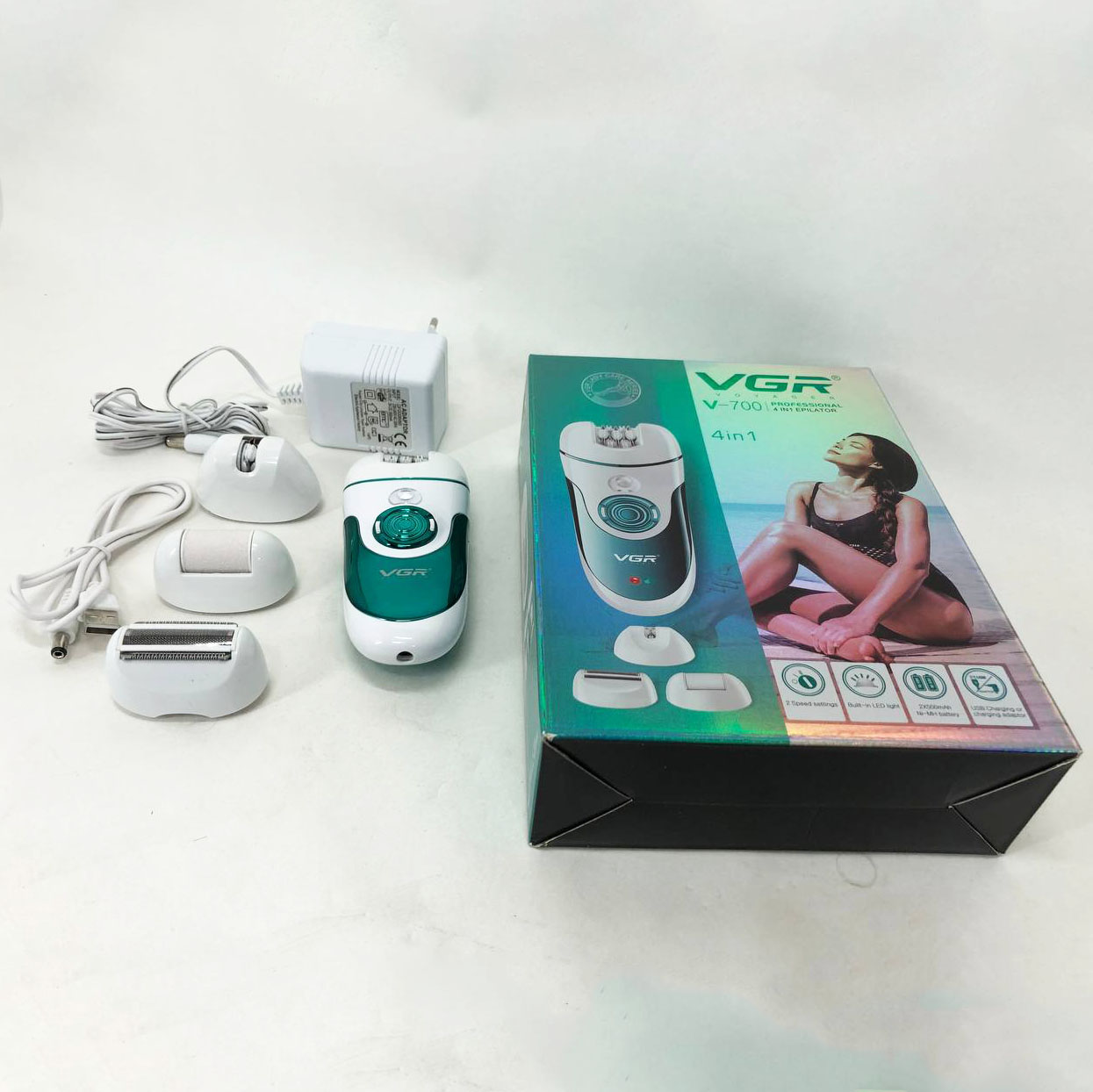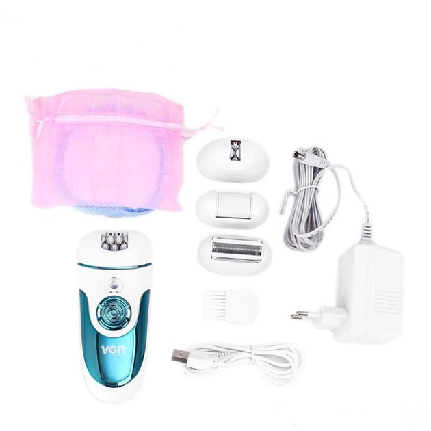Эпилятор VGR V-700 Женский беспроводной с подсветкой для ног и зоны бикини, пемза, электробритва для ног