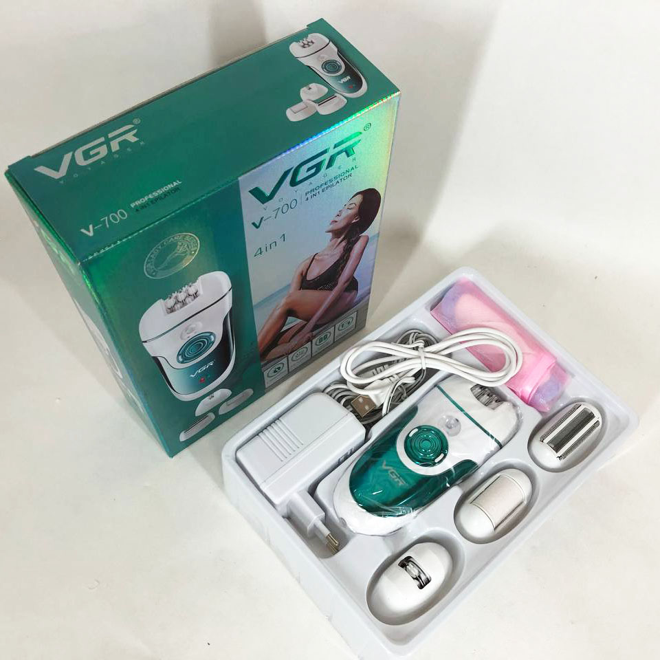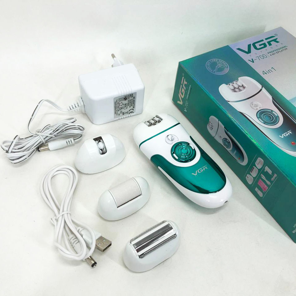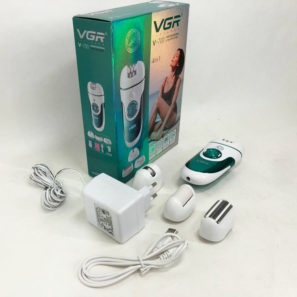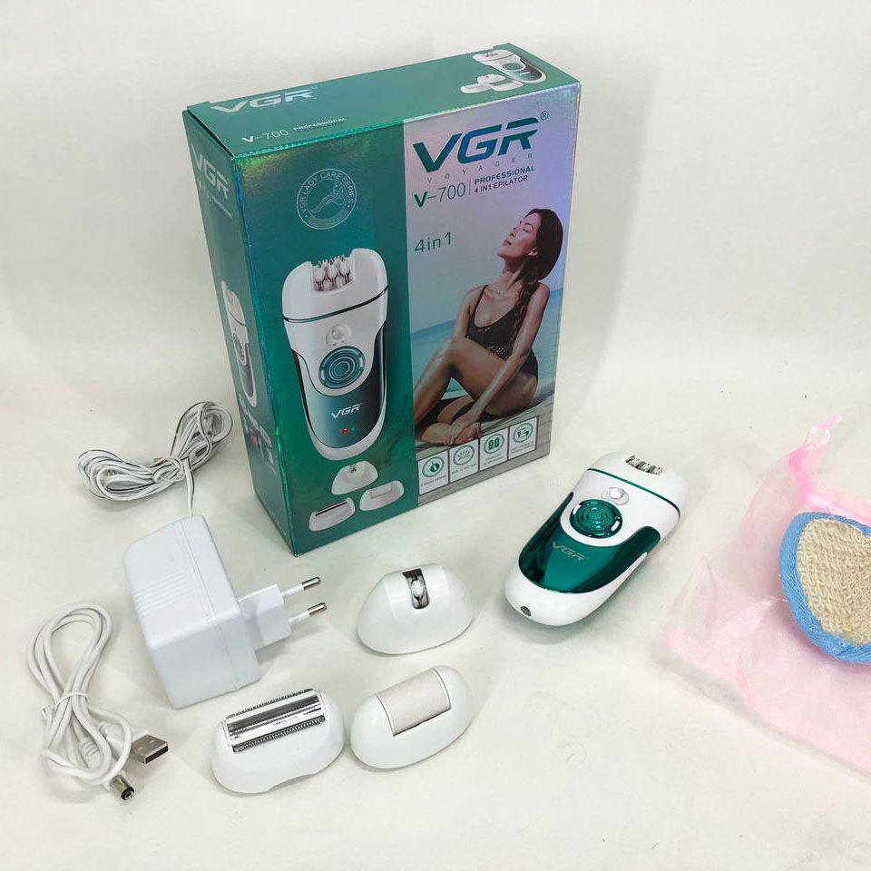 Эпилятор VGR V-700 Женский беспроводной с подсветкой для ног и зоны бикини, пемза, электробритва для ног
